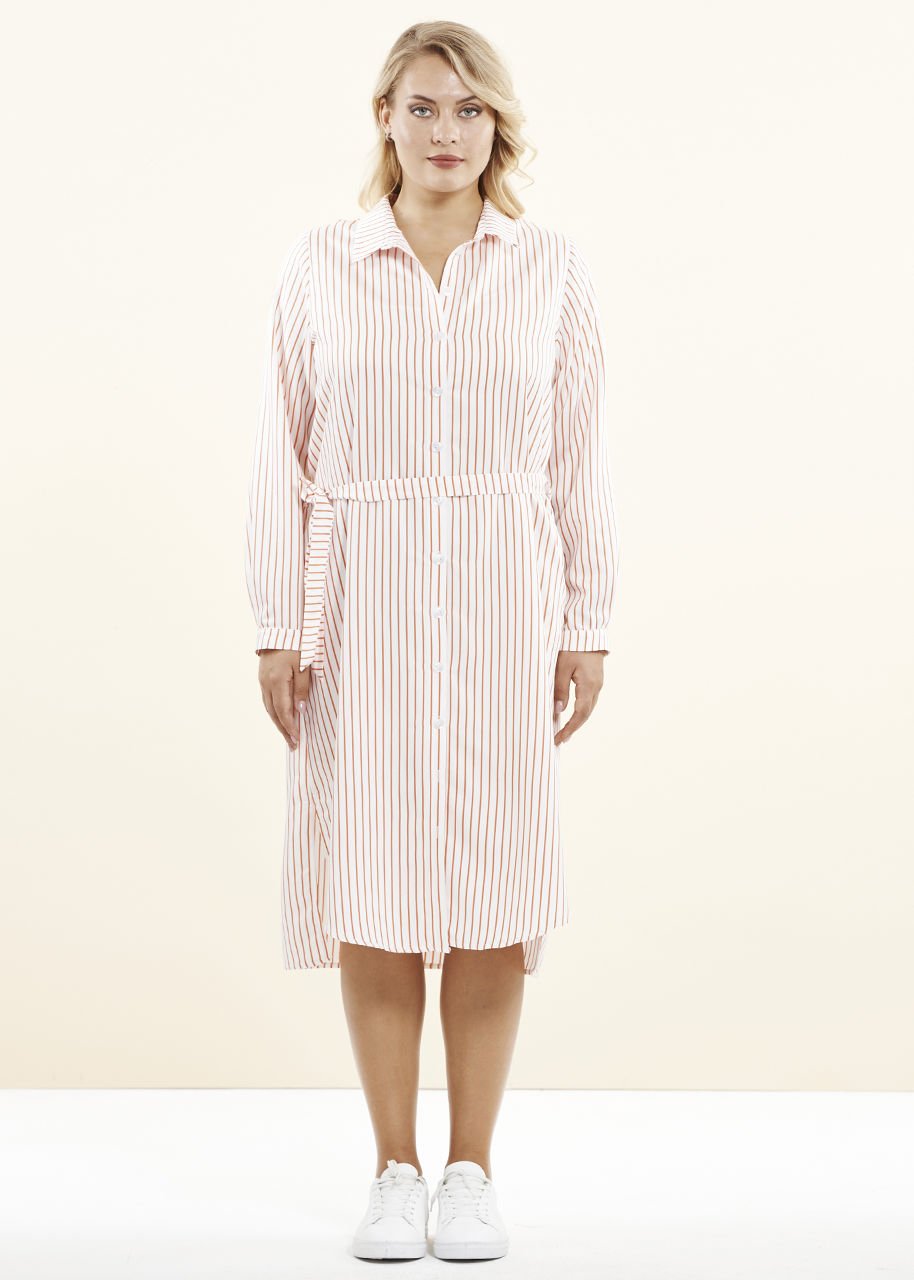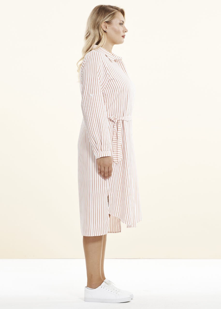 Beyaz Turuncu Çizgili Viskon Büyük Beden Gömlek Elbise