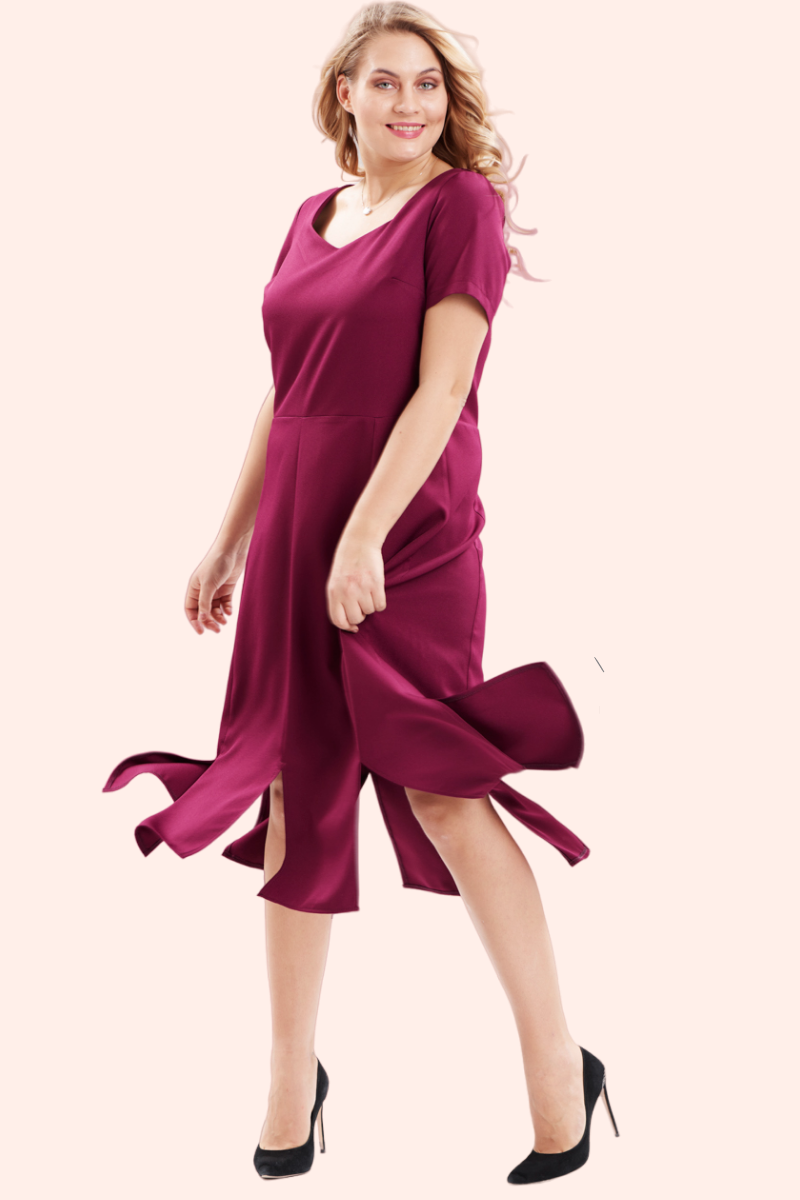 Yırtmaçlı Bordo Büyük Beden Elbise İle Şıklığınızı Taçlandırın!