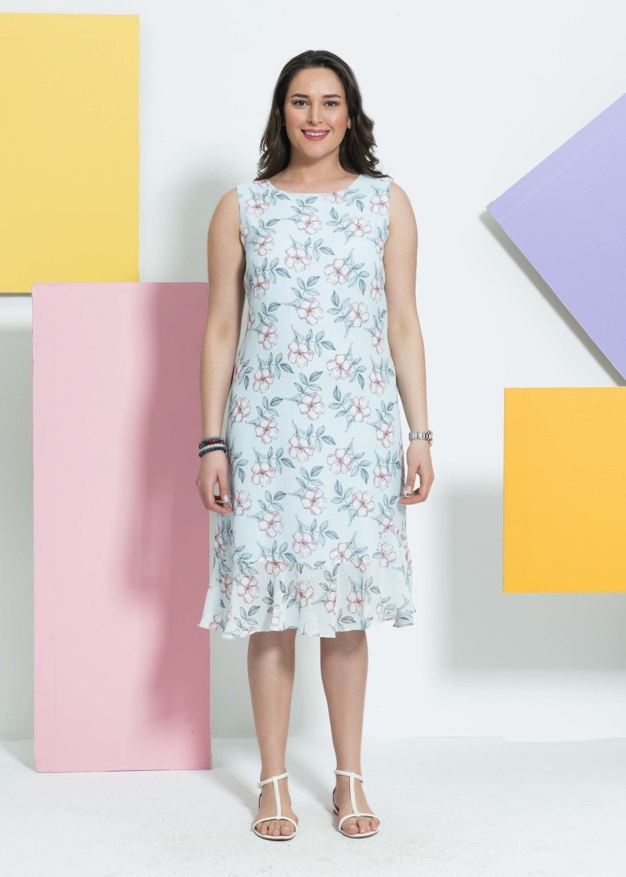 Yakma ve sıkma yapmayan astarlı poliviskon kumaştan üretilen, volanlı eteğe sahip Çiçekli Büyük Beden Elbise ile bedeniniz ne olursa olsun tarzınızı konuşturun. Sıfır kollu bu tasarım elbiseyi isterseniz ofis şıklığınız için kullanın, isterseniz şık ayakkabılarla kombinleyin ve özel toplantıların yıldızı olun. Buyukbedenstil.com farkıyla online sipariş vererek sahip olabilirsiniz.