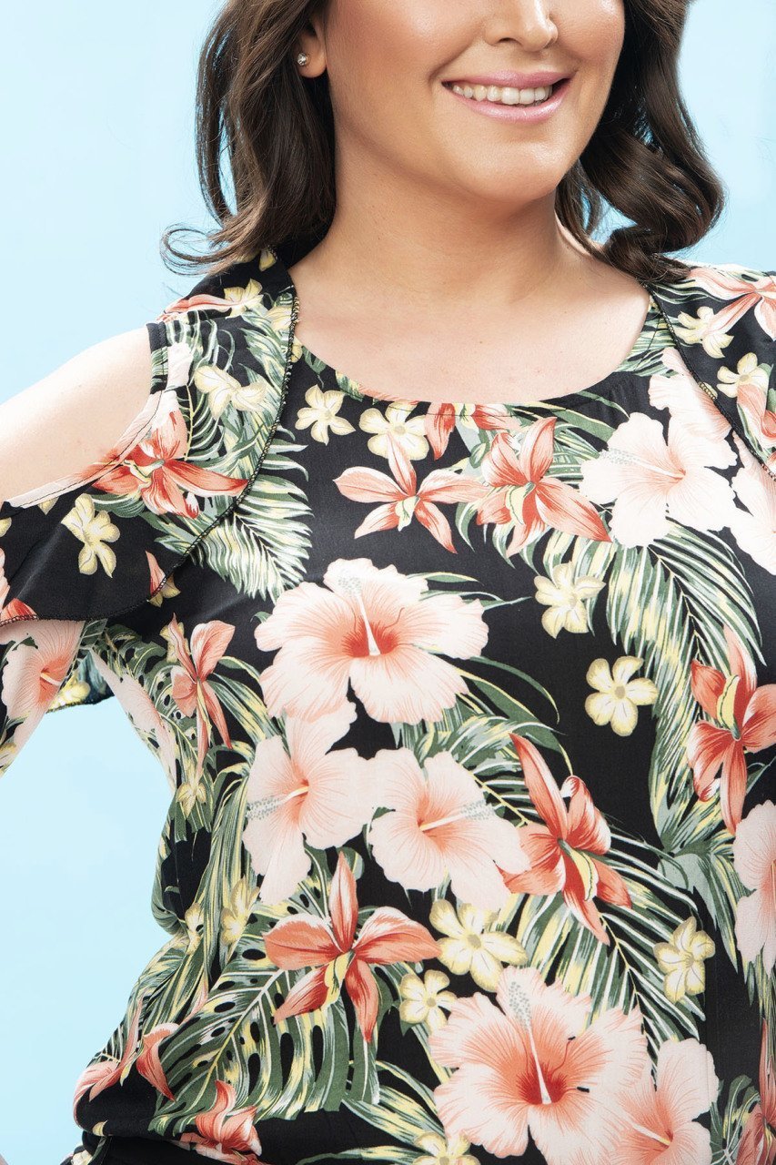 Çiçekli Viskon Büyük Beden Tulum 44 Beden