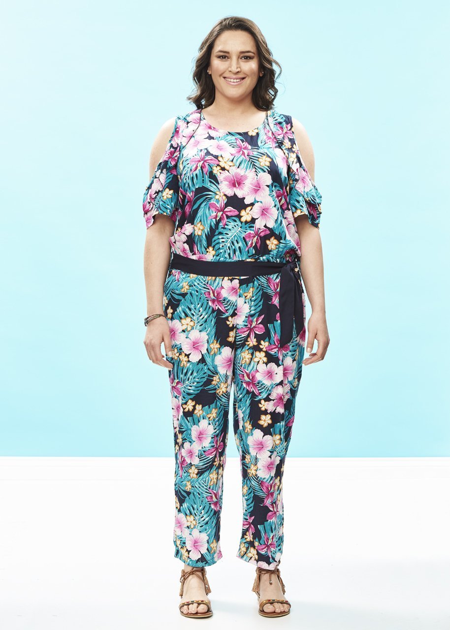 4.Çiçekli Büyük Beden Tulum İç Bacak Boyu: 71cm