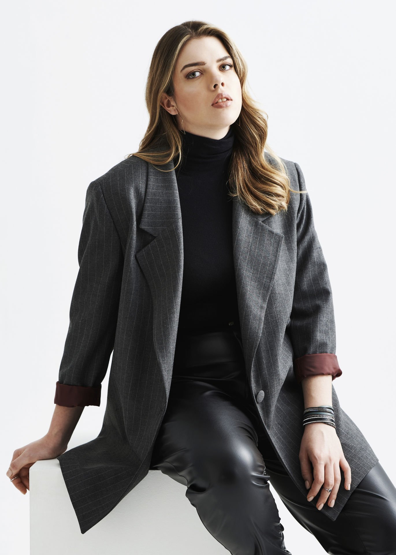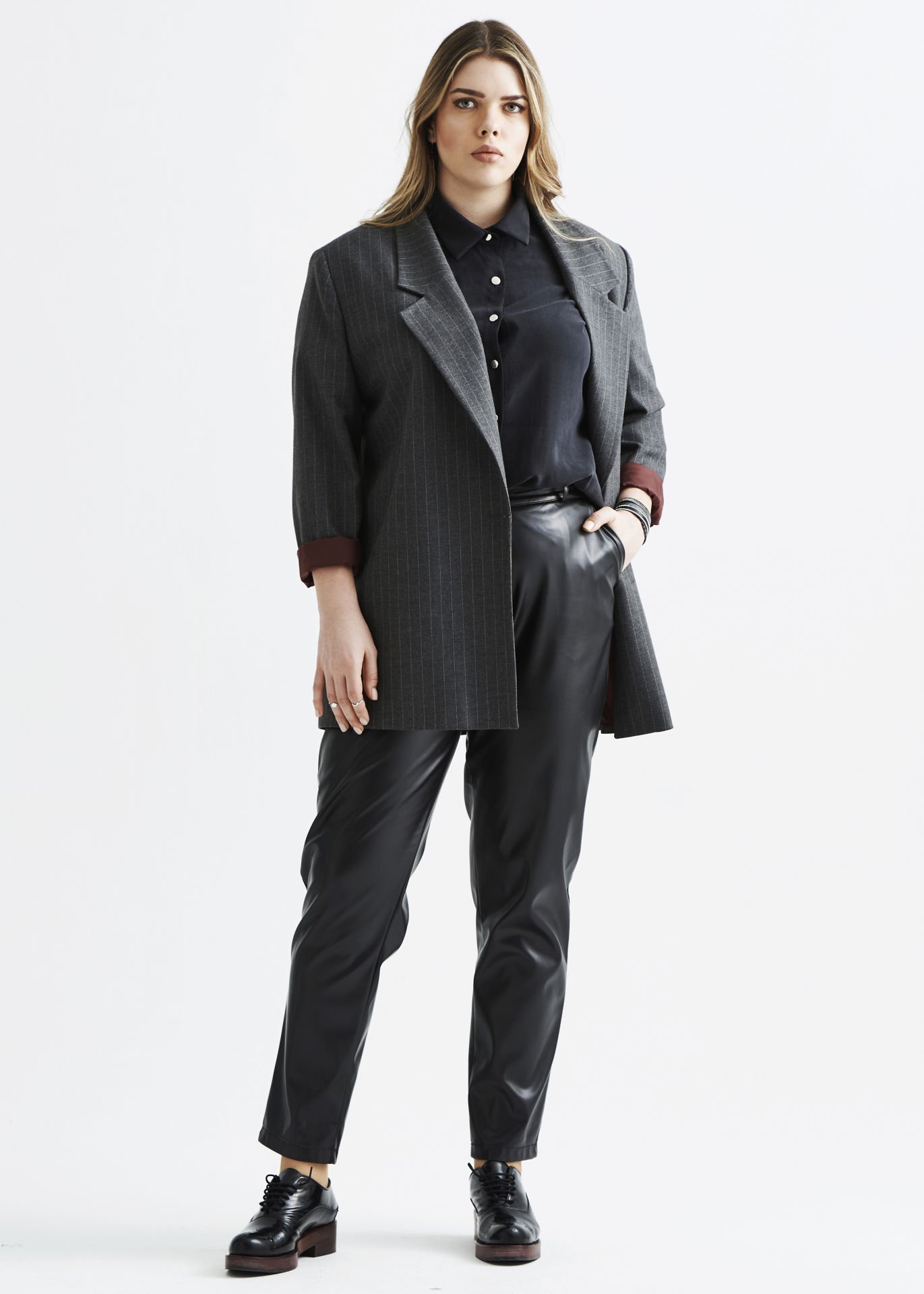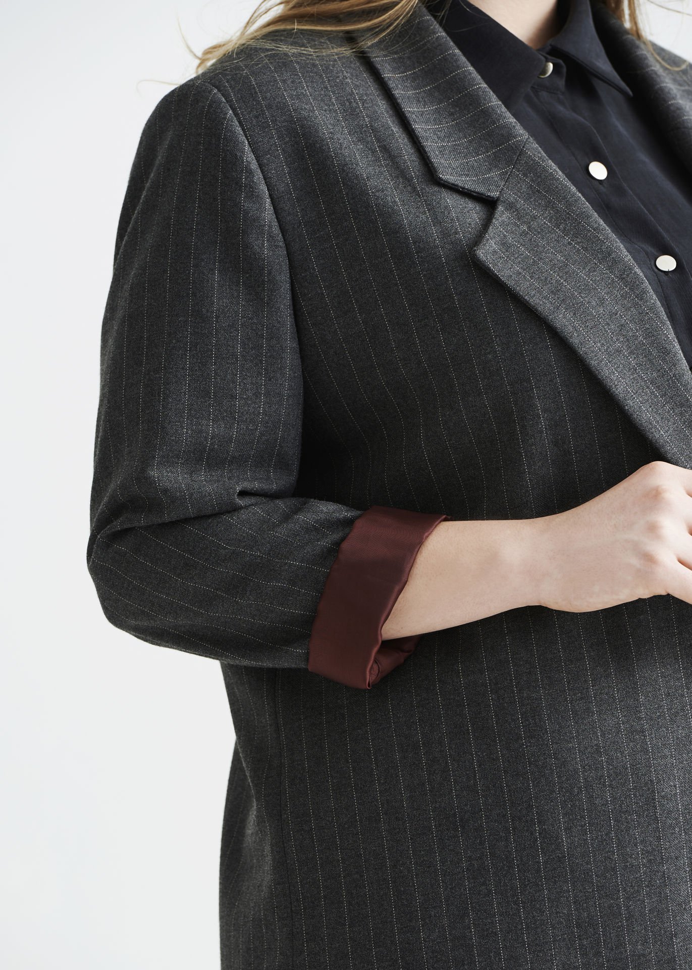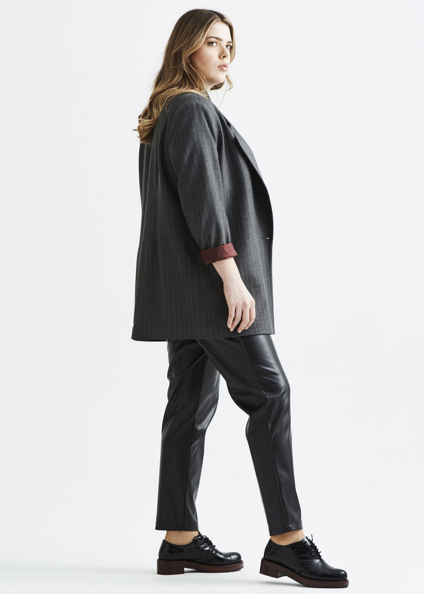 Gri Çizgili Poliviskon Büyük Beden Kadın Ceket