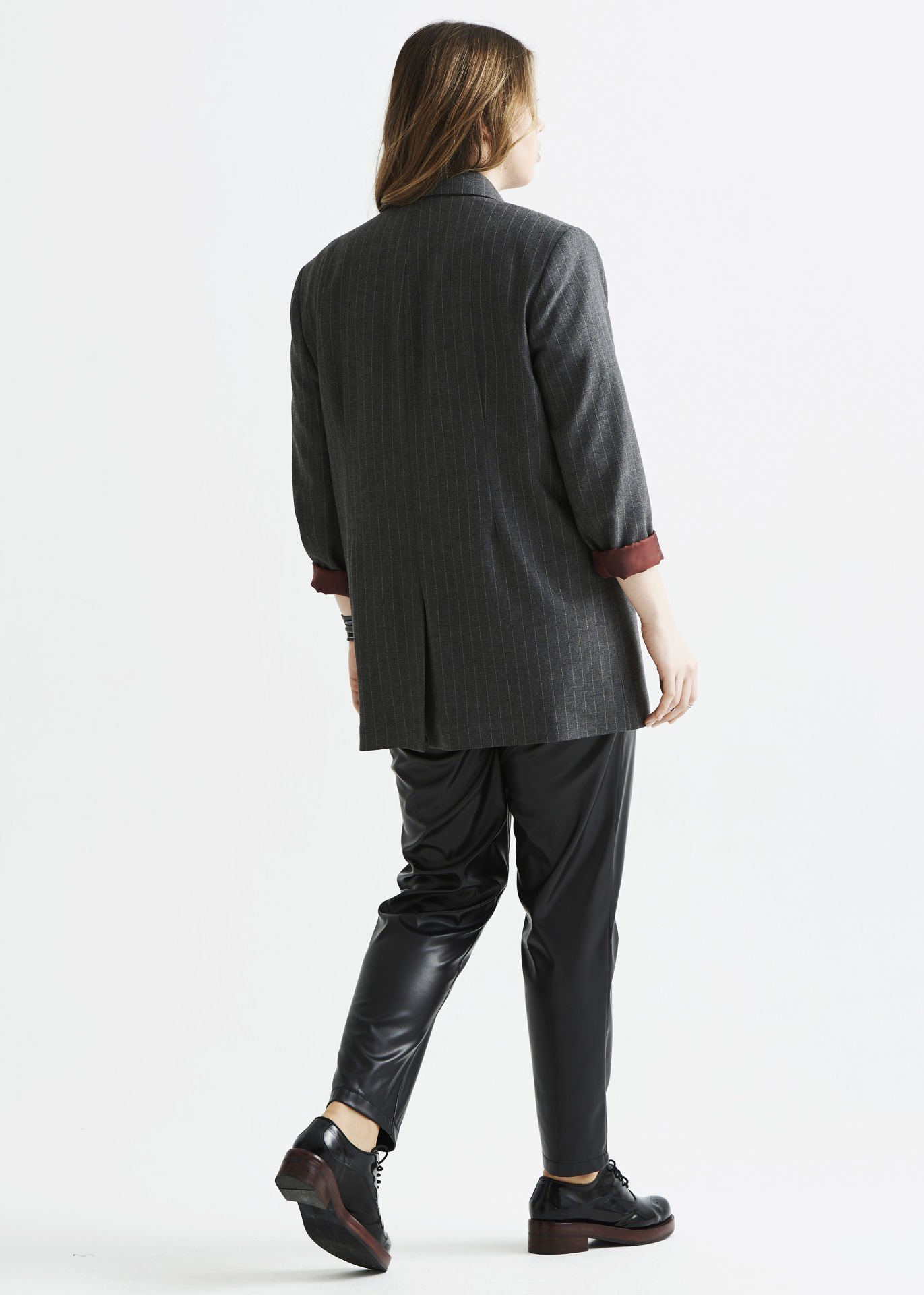 5.Gri Çizgili Poliviskon Büyük Beden Kadın Ceket Boyu: 77cm