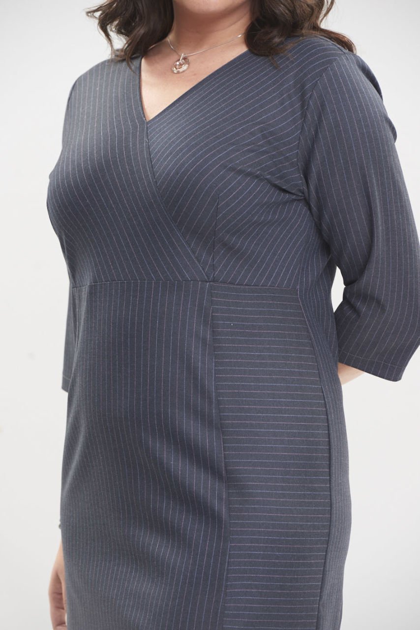 3.Çizgili V Yaka Büyük Beden Elbise Boyu: 100cm