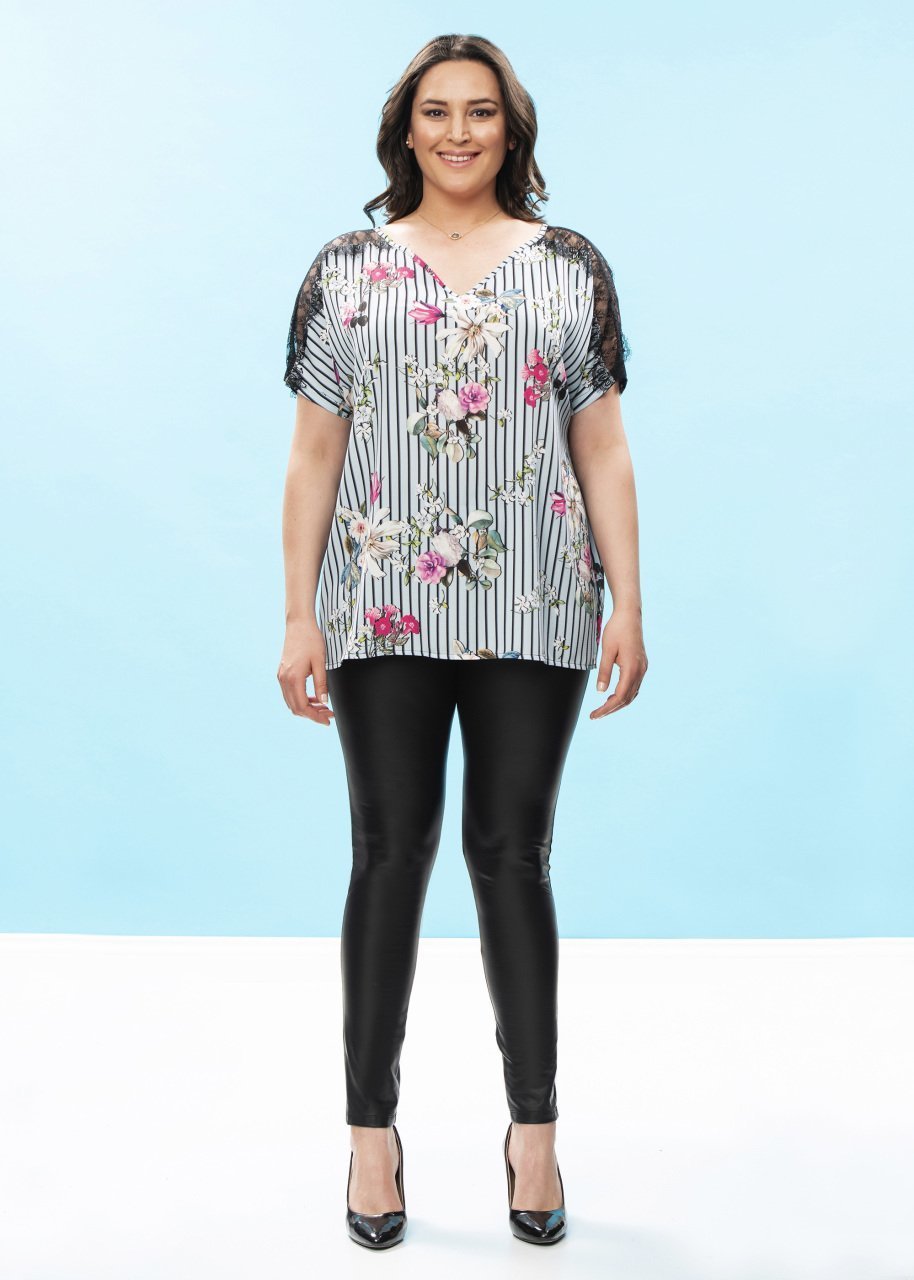 Dantelli Çiçek Desenli Büyük Beden Bluz