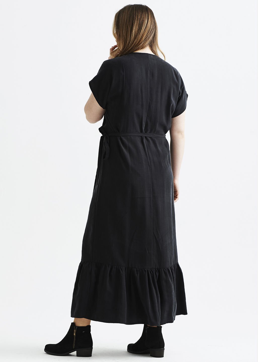 4.Eteği Büzgülü Kruvaze Viskon Siyah Büyük Beden Elbise
