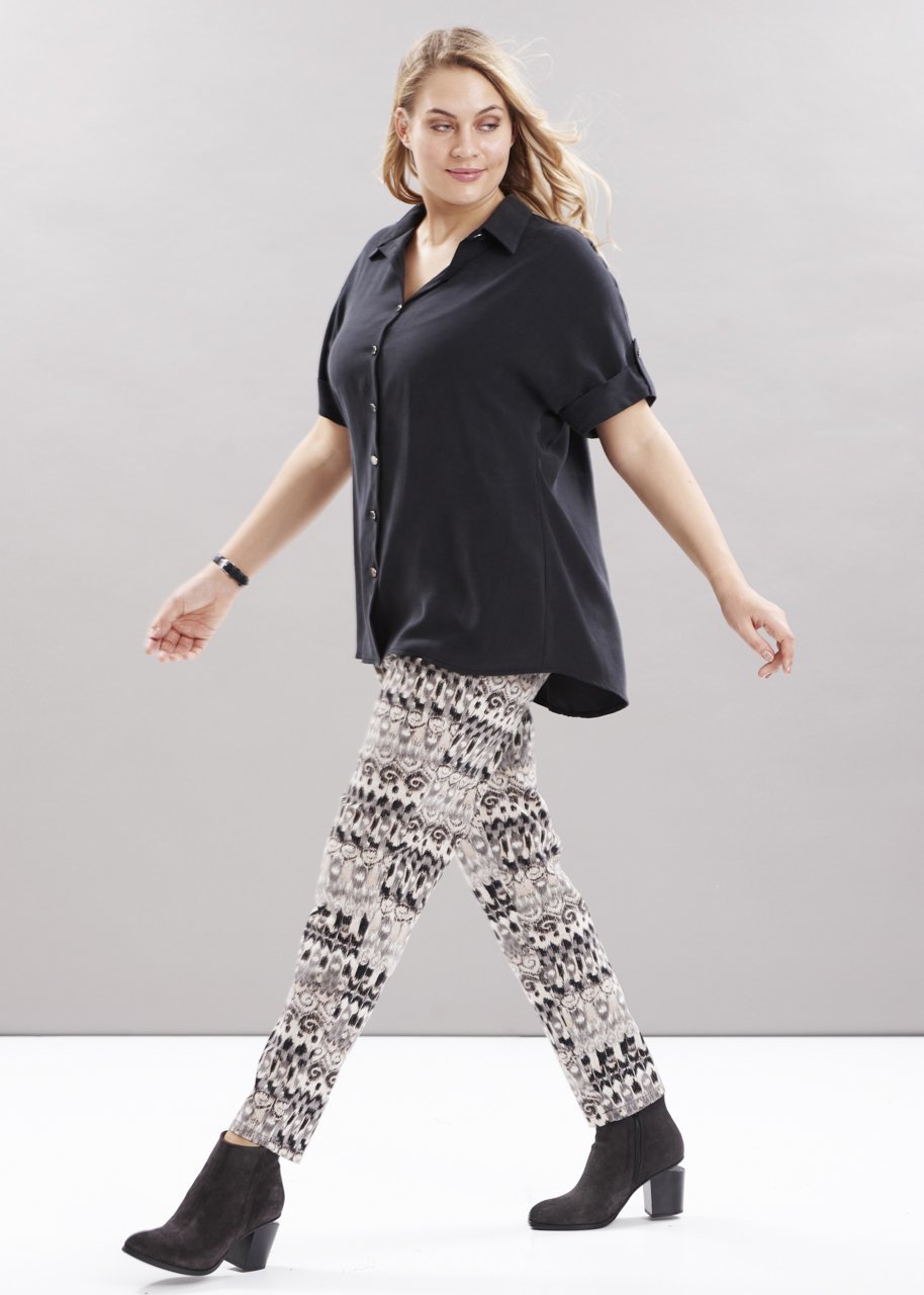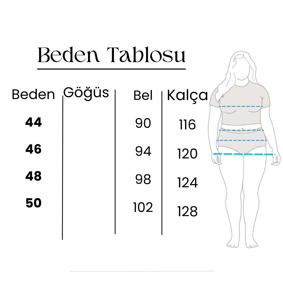 3.Etnik Desen Füme Büyük Beden Kadın Pantolon İç Bacak Boyu: 75cm