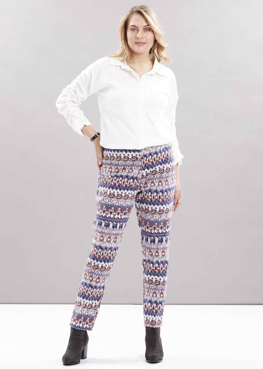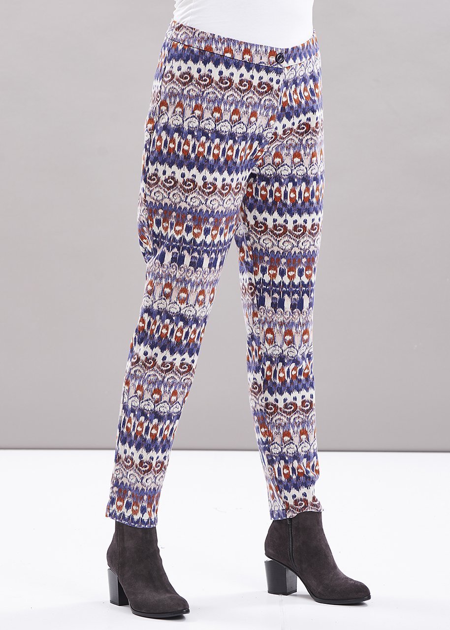 Etnik Desen Mavi Büyük Beden Kadın Pantolon