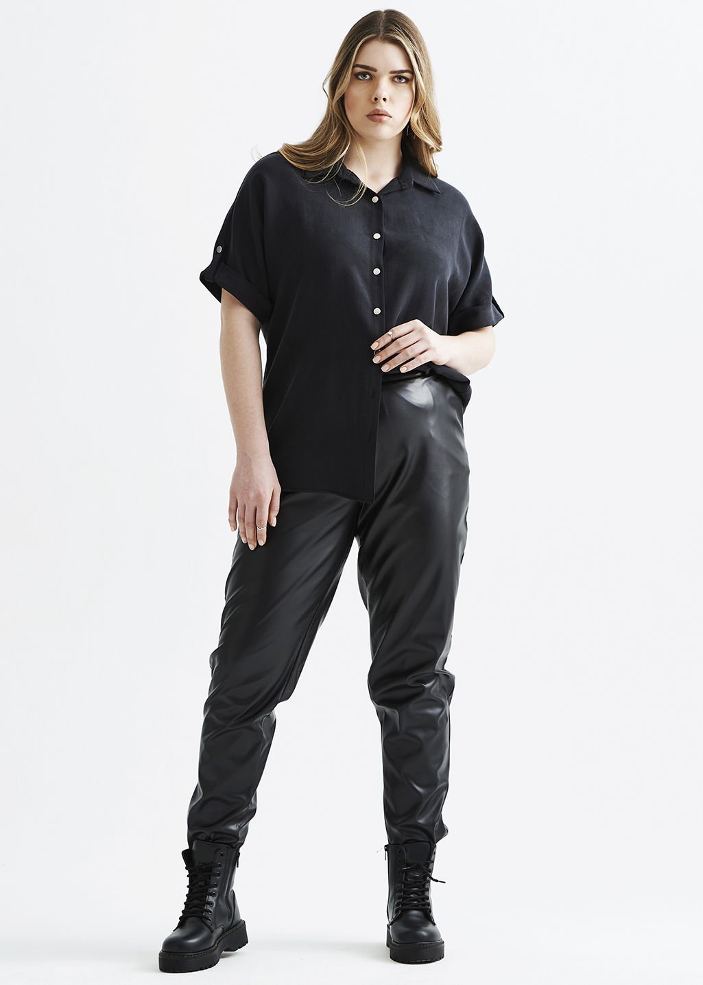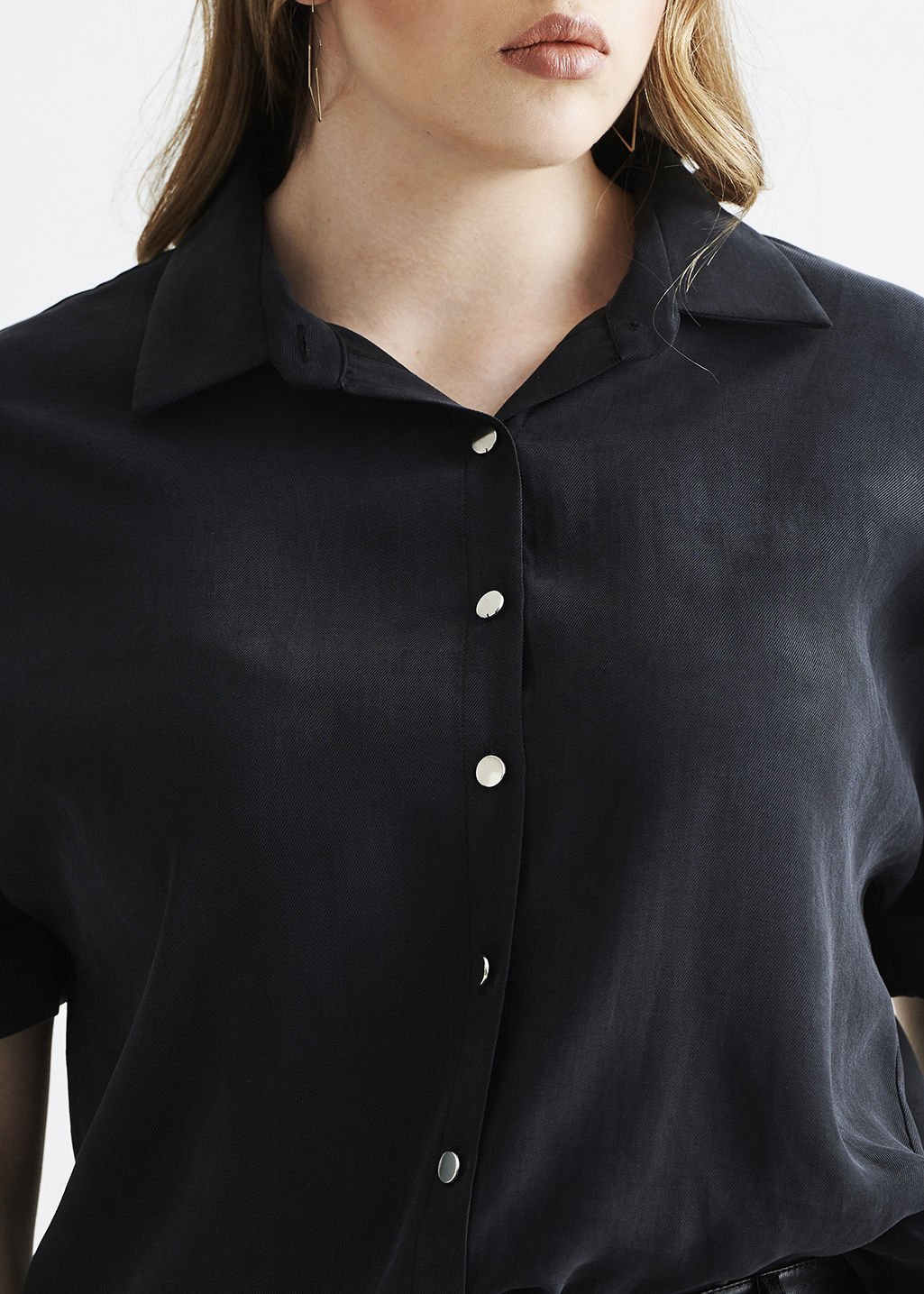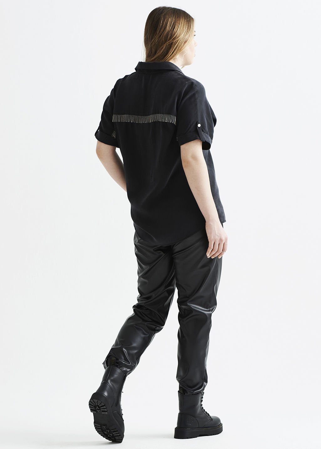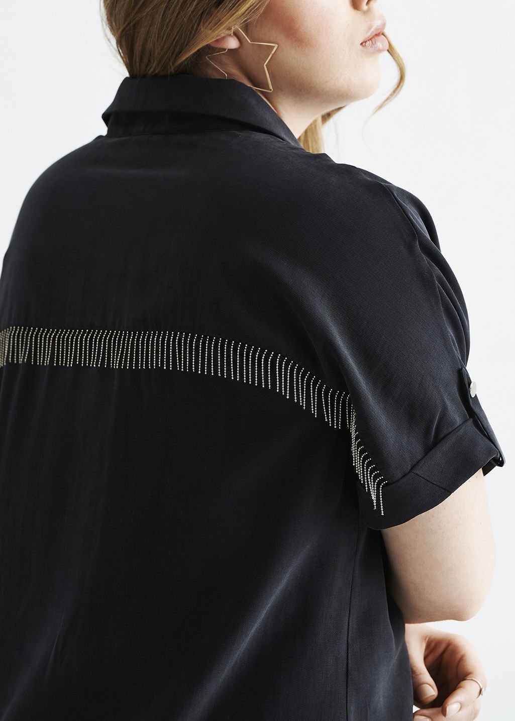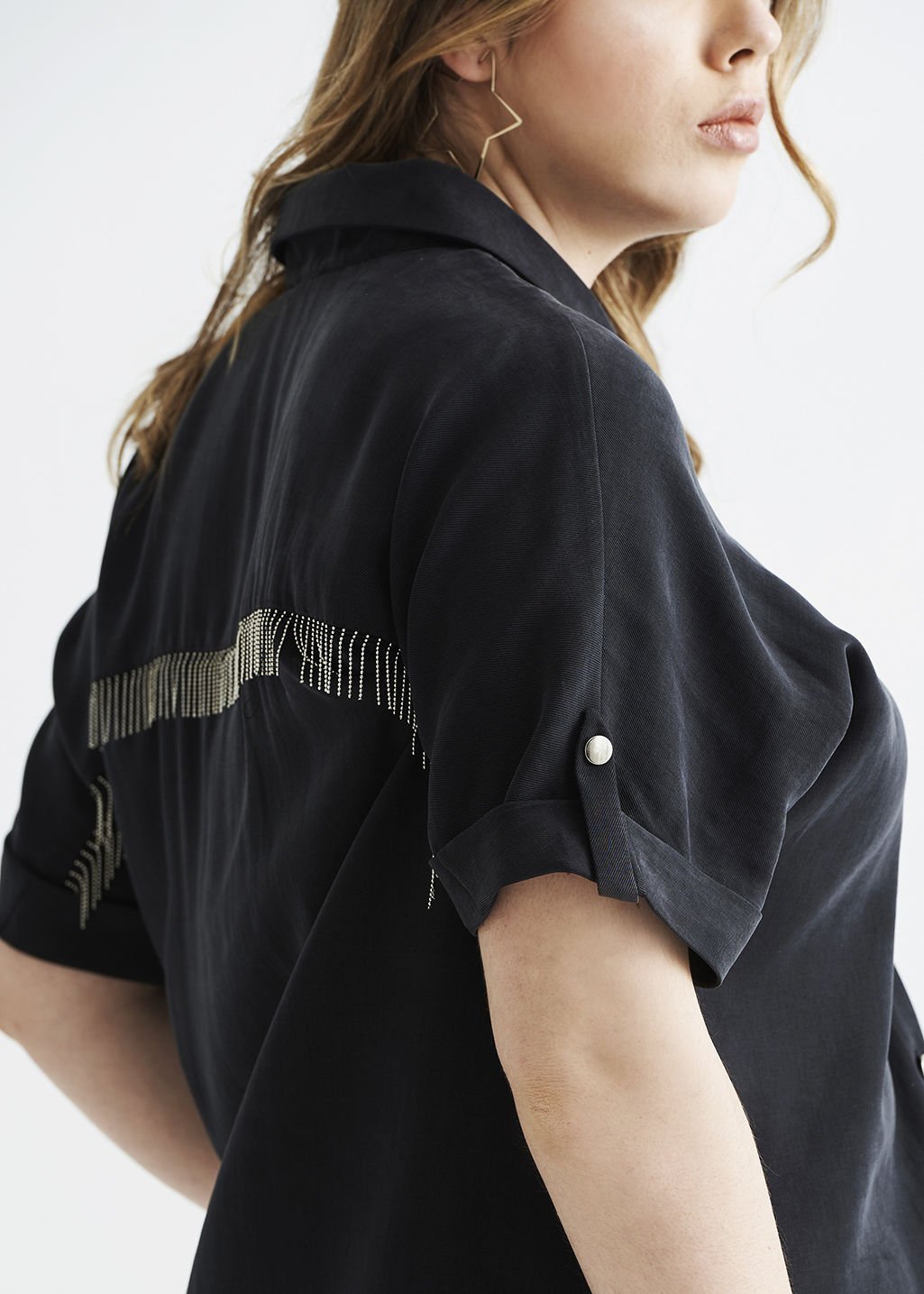 Füme Sırtı Zincir Detaylı Büyük Beden Kadın Gömlek