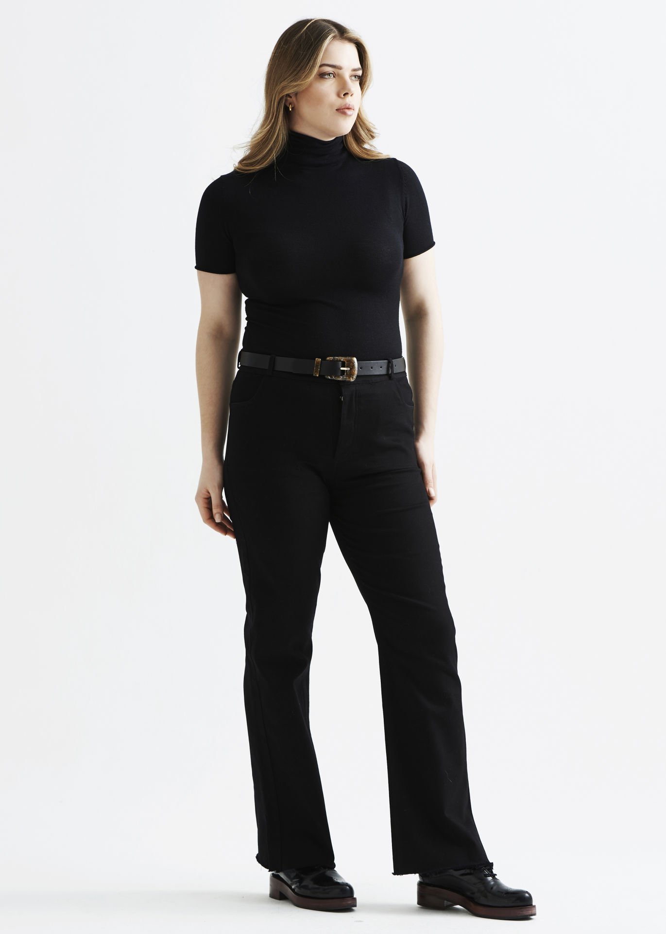 Gabardin Önden Düğmeli Siyah Büyük Beden Pantolon