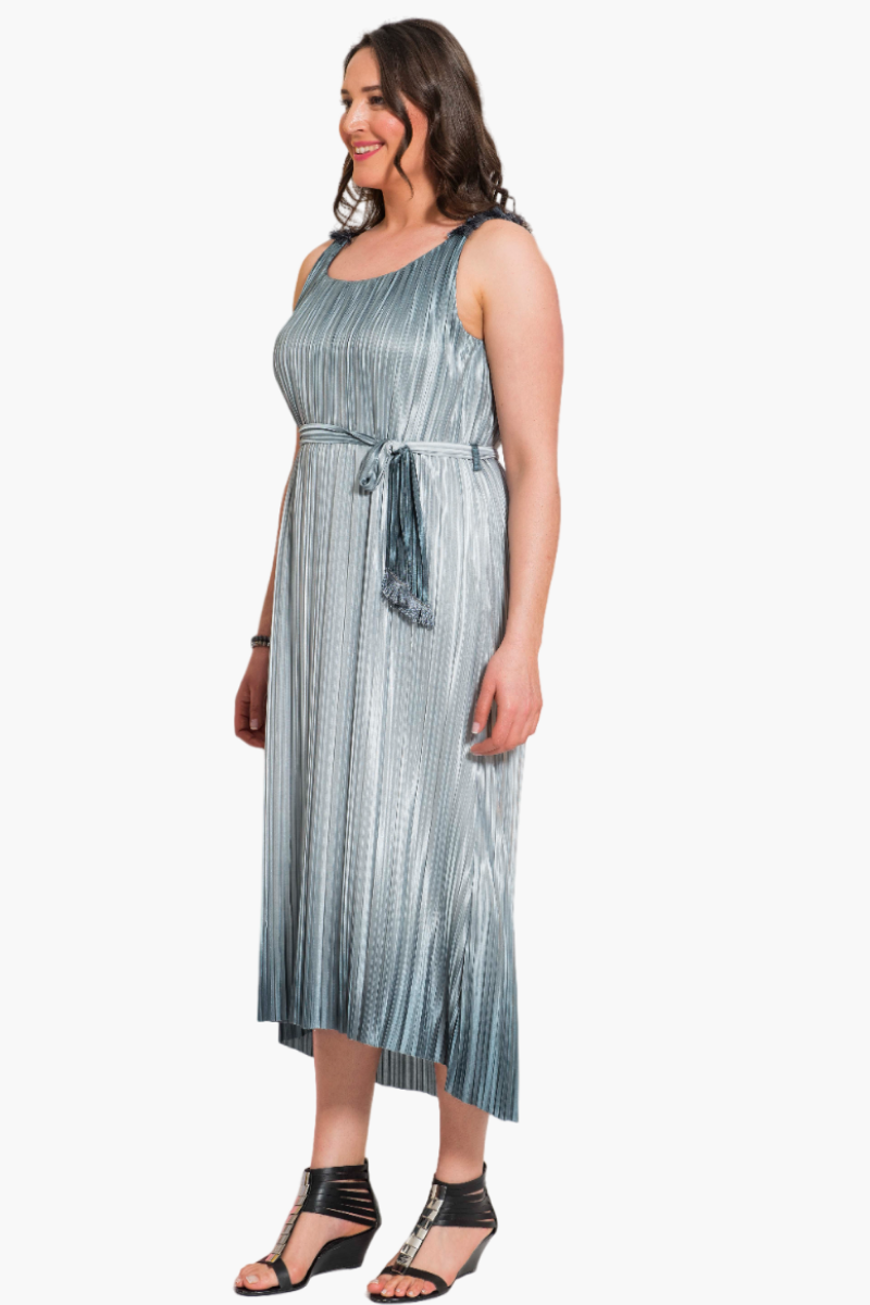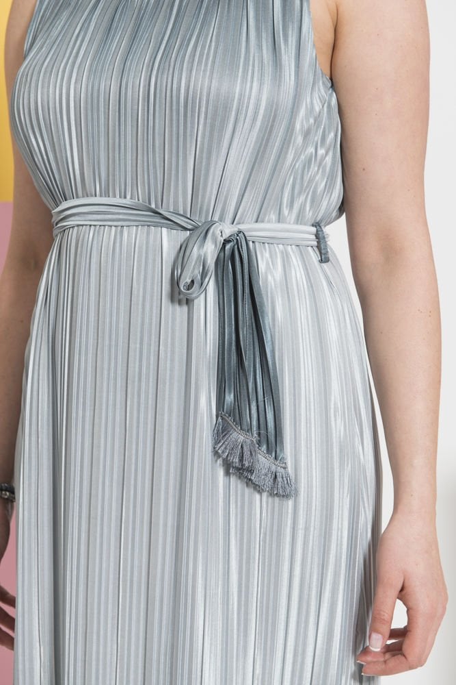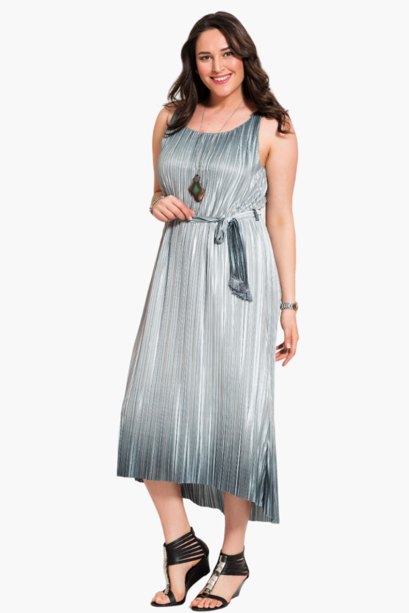 Gri Parlak Pliseli Büyük Beden Elbise