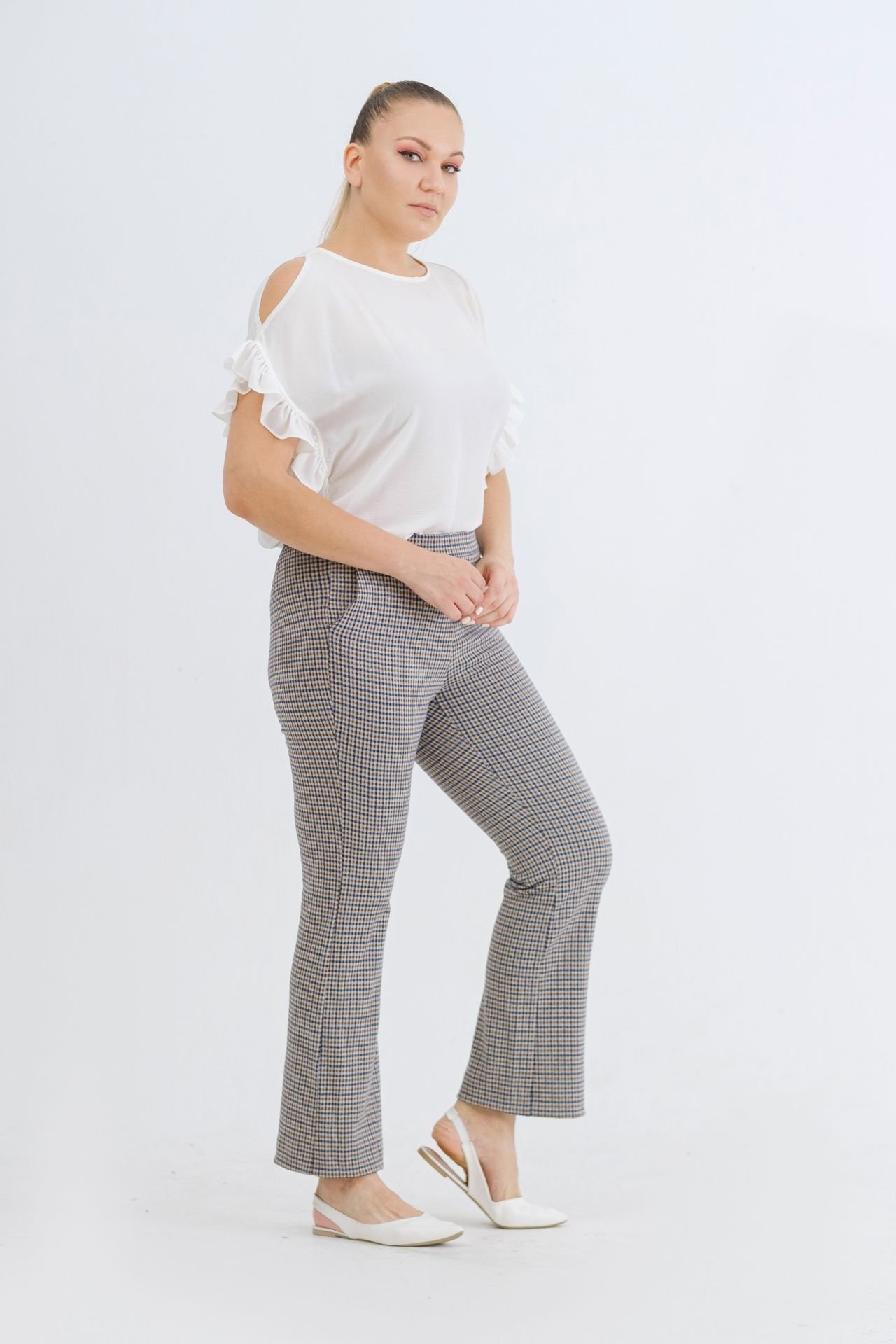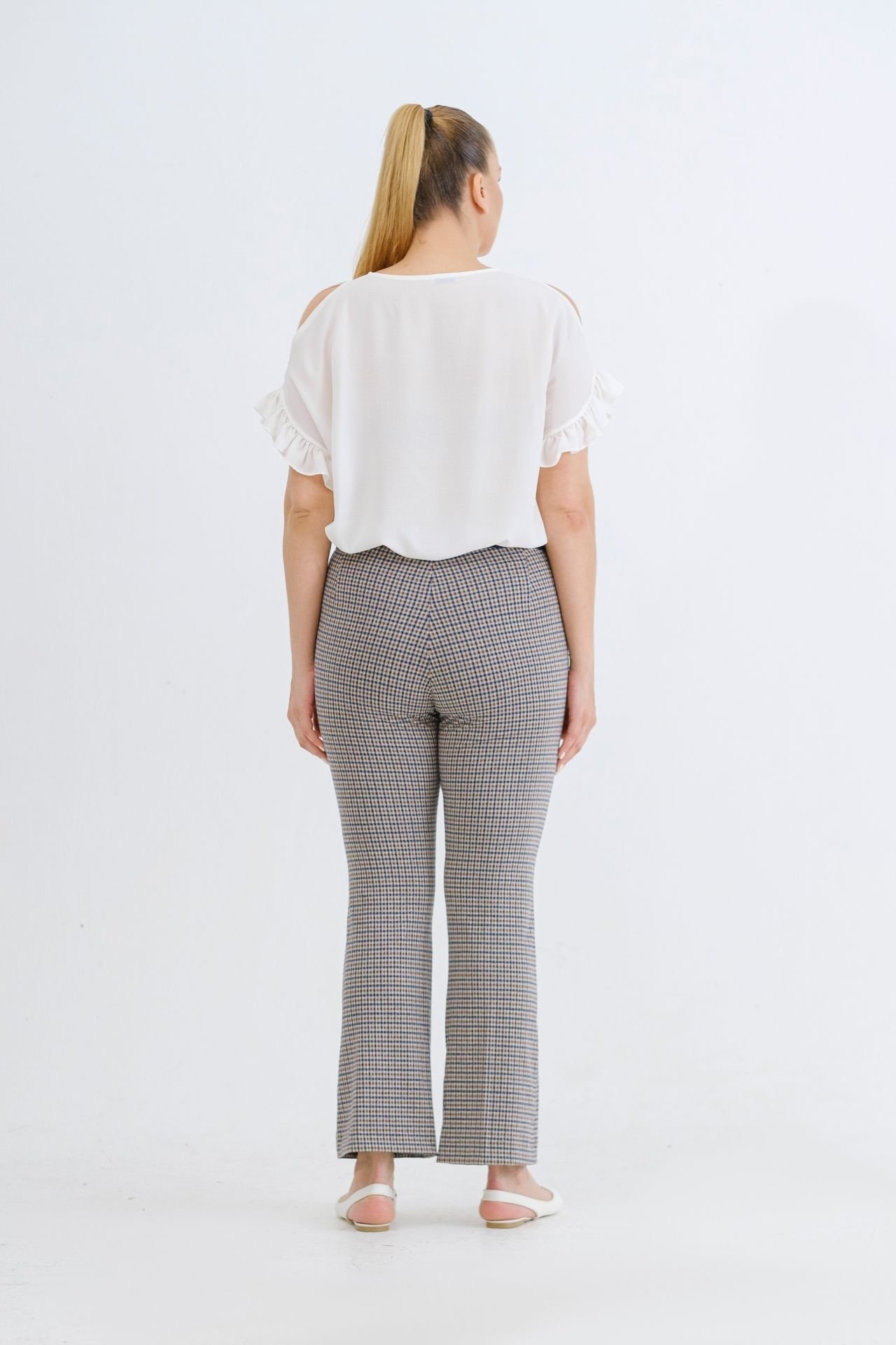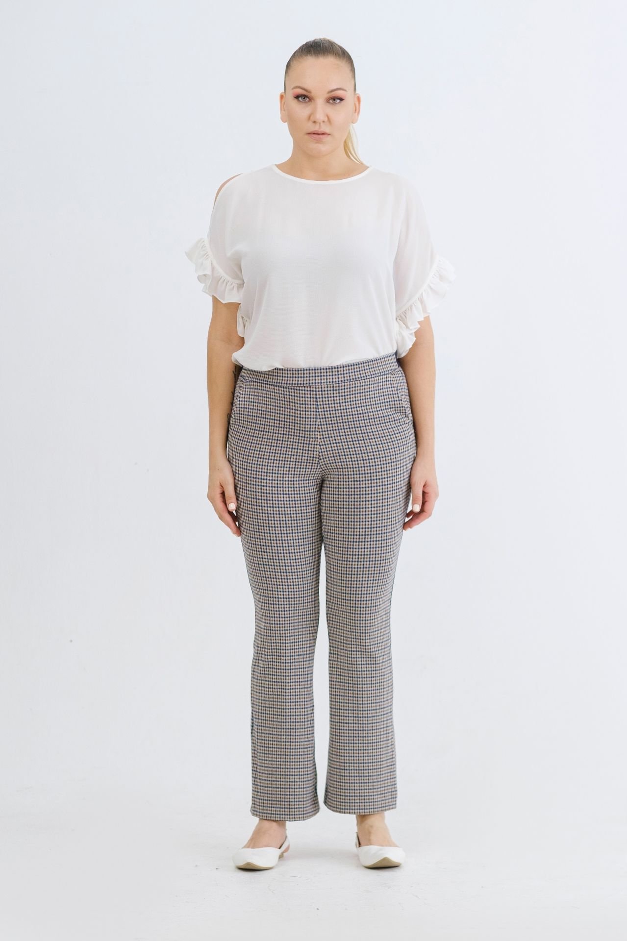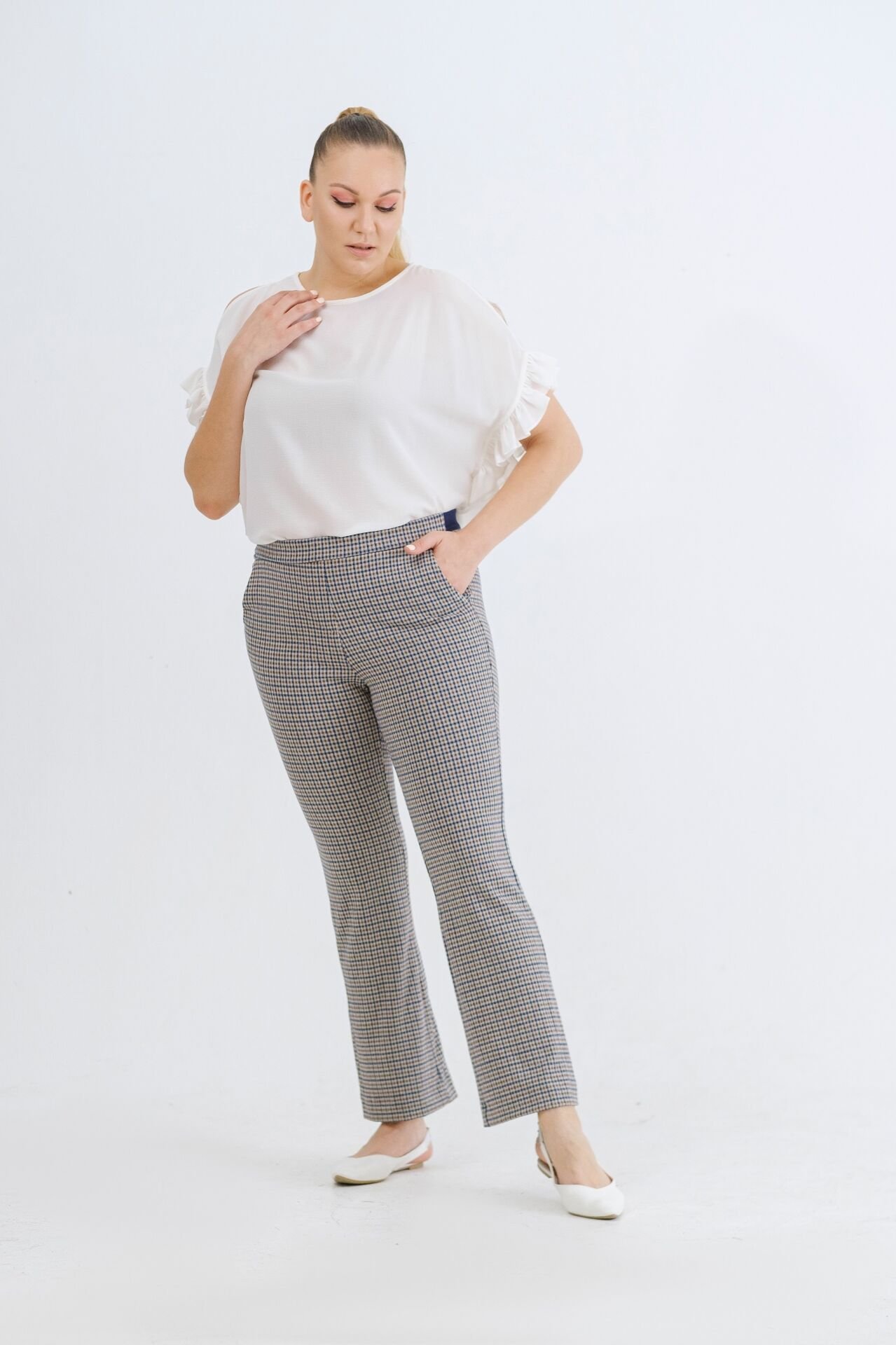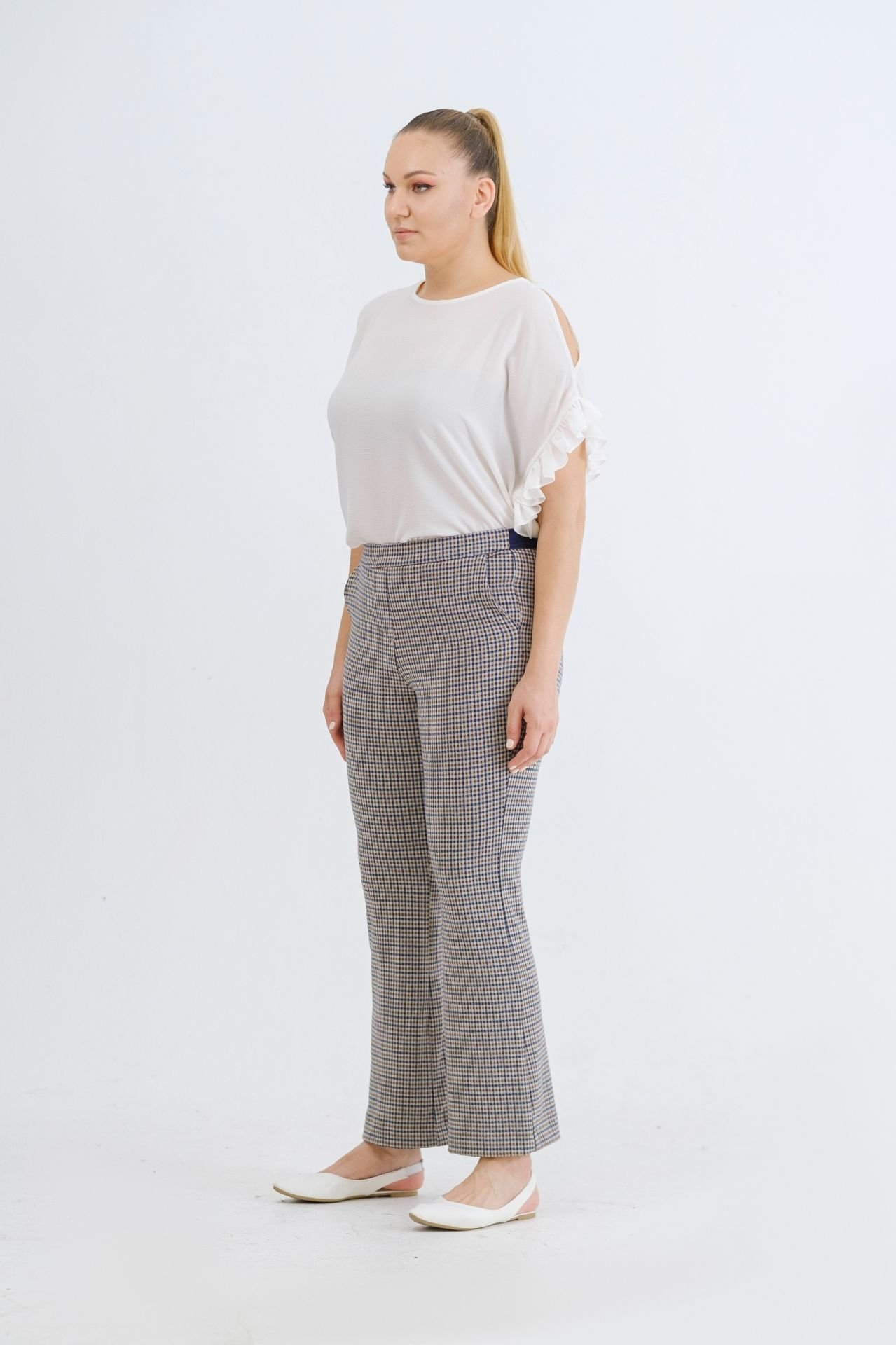 Kareli Beli Lastikli Büyük Beden Kadın Pantolon