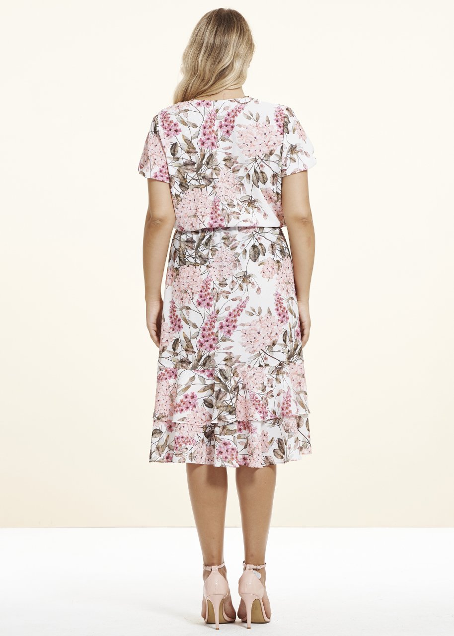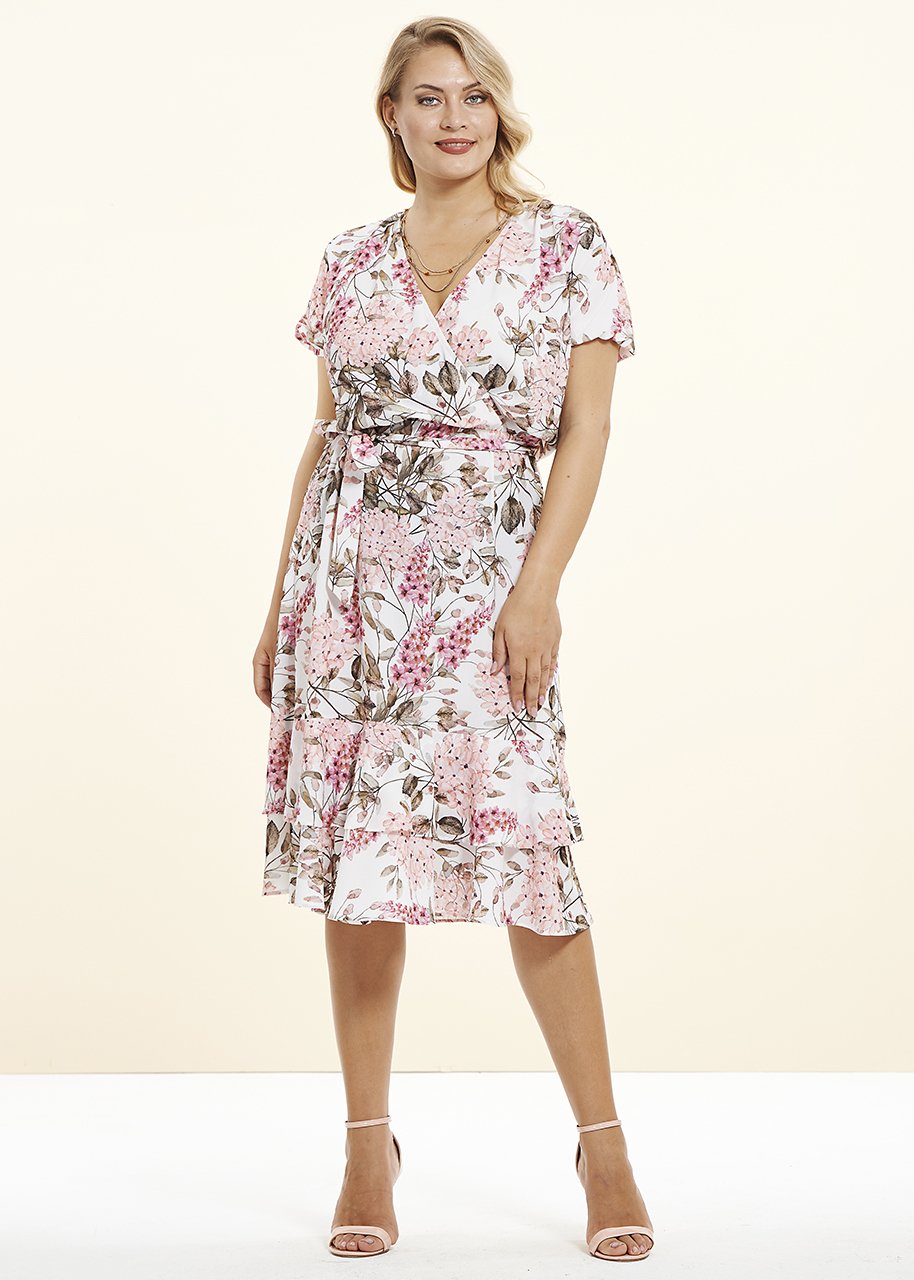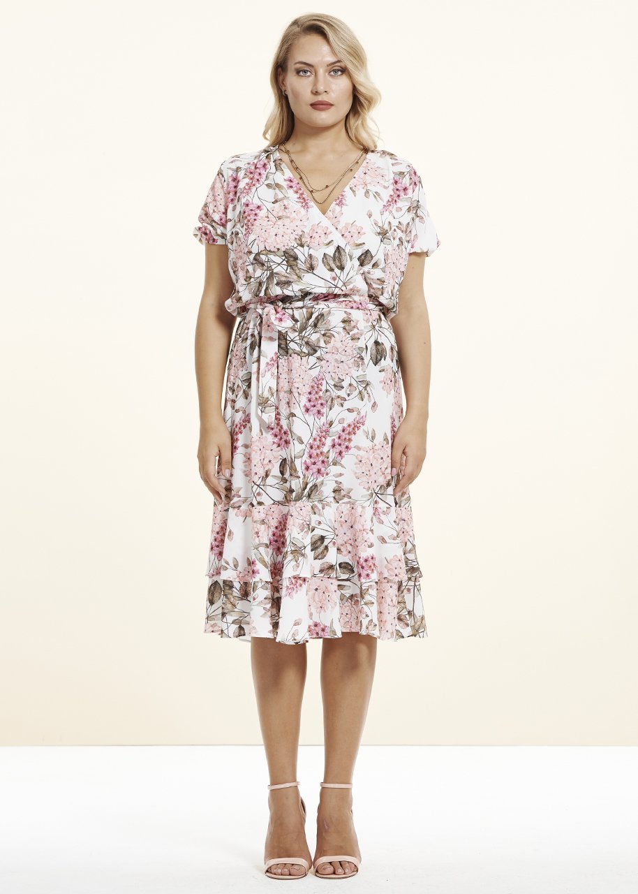 Kruvaze Çiçekli Krep Büyük Beden Elbise