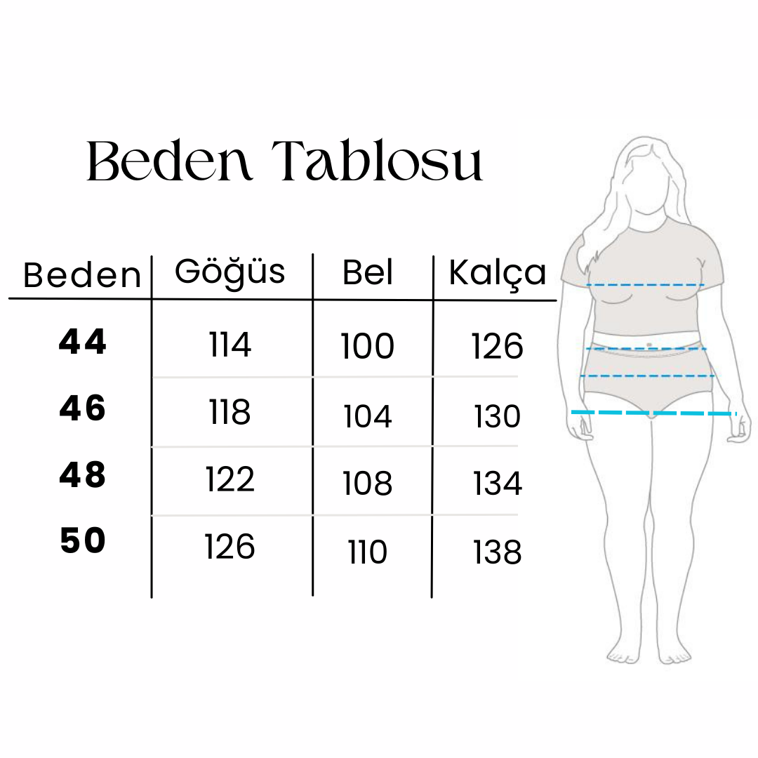 Tulumda kullanılan krep kumaş ütü gerektirmeyen dökümlü bir kumaştır. Kalıbı ise rahat kalıptır, 44 ve 46 arasında seçim yapmakta zorlanıyorsanız 44 tercih edilebilirsiniz. Çiçekli Büyük Beden Kadın Tulum ürün ölçüleri ürün fotoğrafları içinde paylaşılmıştır.