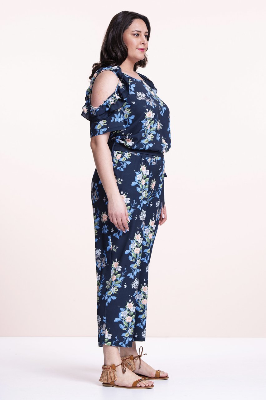 Lacivert Çiçekli Krep Büyük Beden Tulum