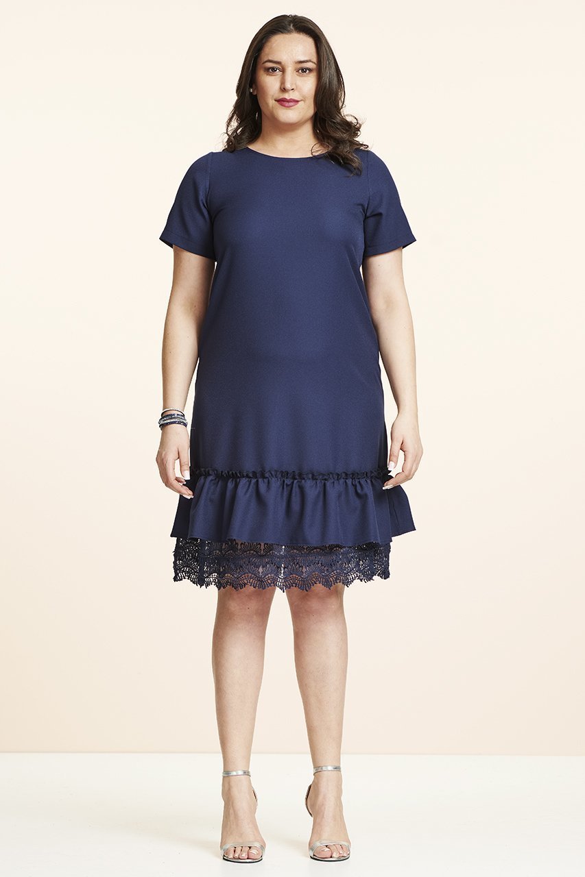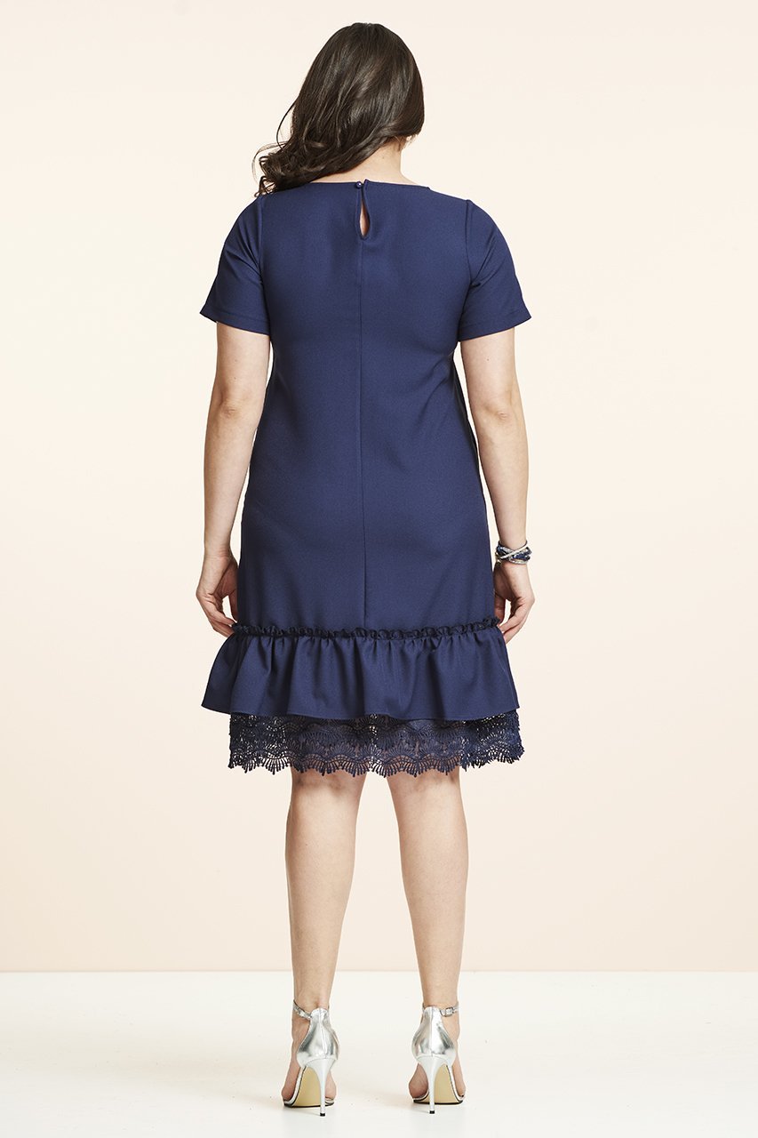 Lacivert Etek Ucu Dantel Büyük Beden Elbise