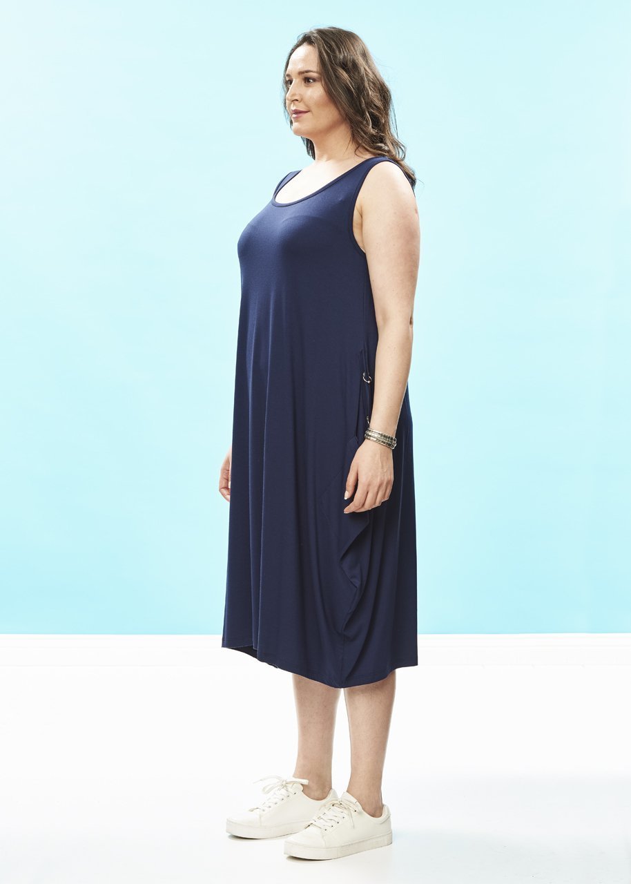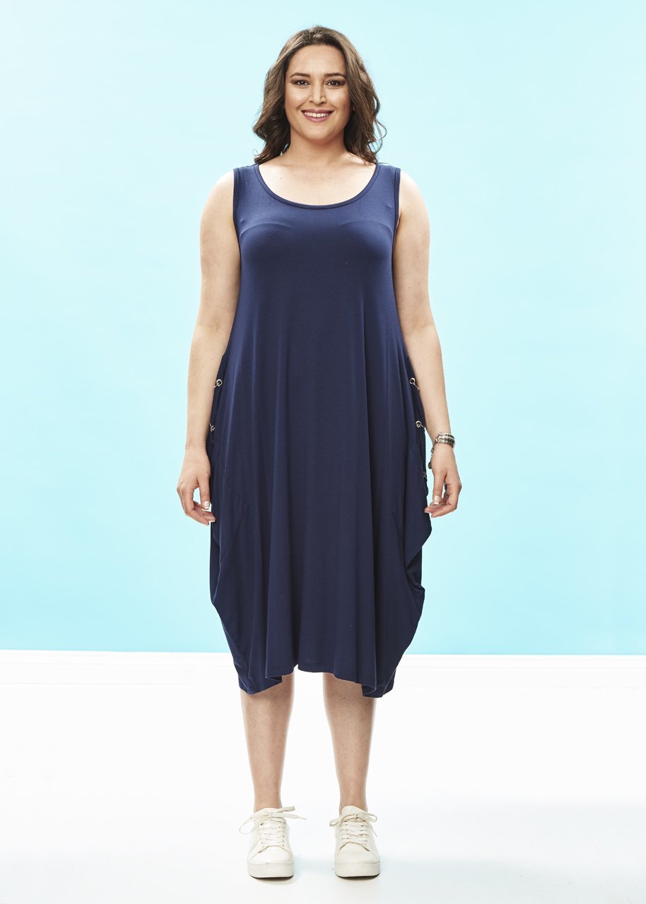 4.Lacivert Penye Cepli Büyük Beden Elbise Boyu: 105cm