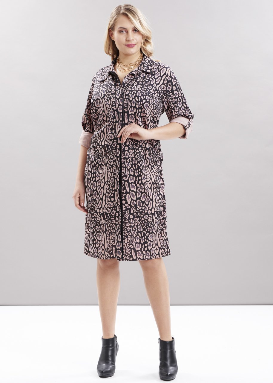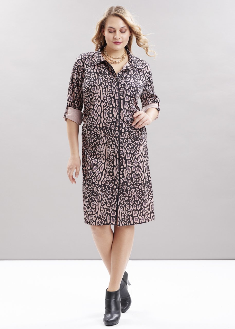 Leopar Desenli Büyük Beden Gömlek Elbise