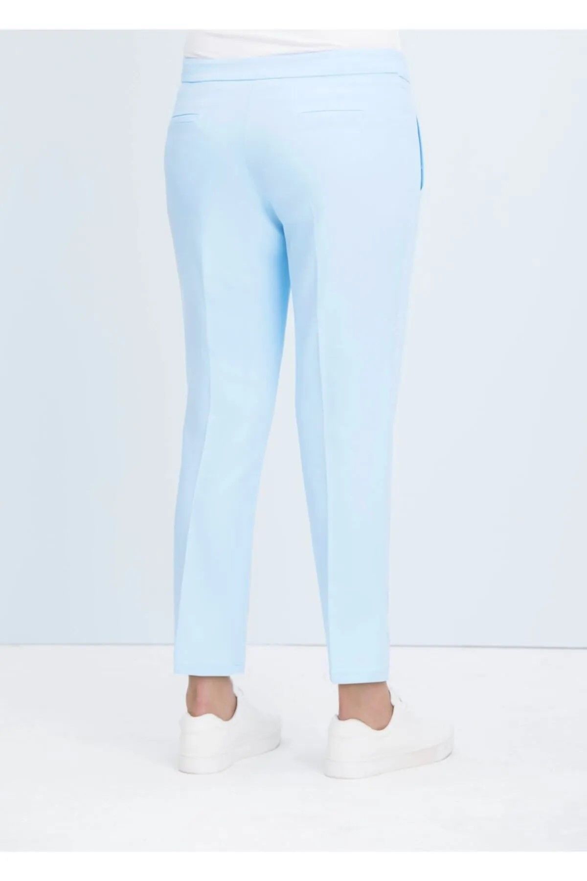 Mavi Düşük Bel Cep Kapaklı Büyük Beden Kadın Pantolon