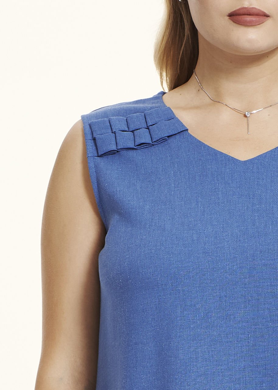 5.Mavi Keten Kumaş Büyük Beden Elbise Boyu: 100cm