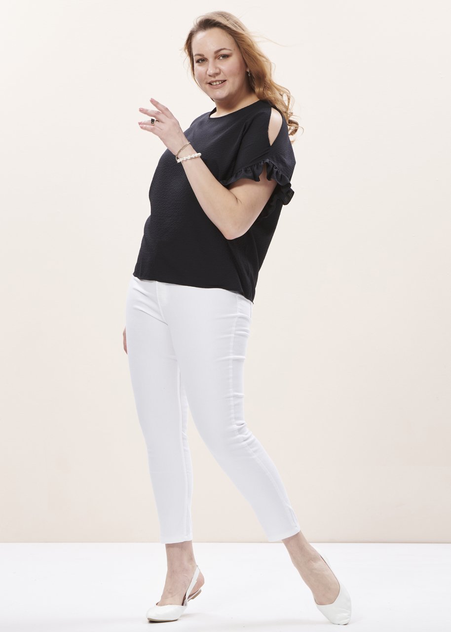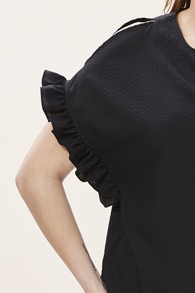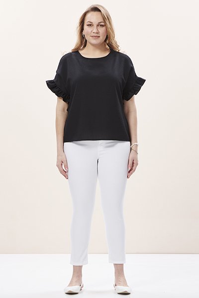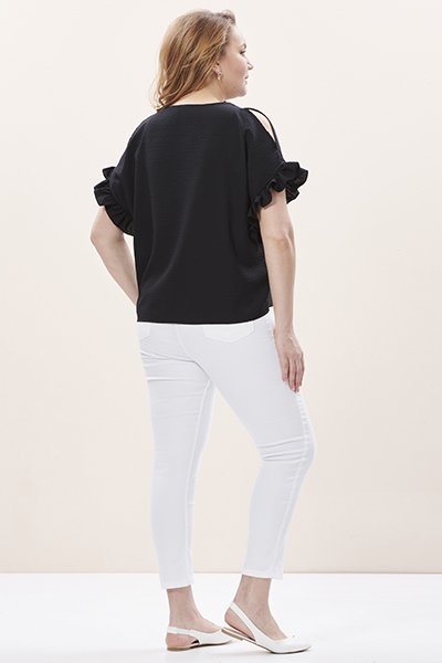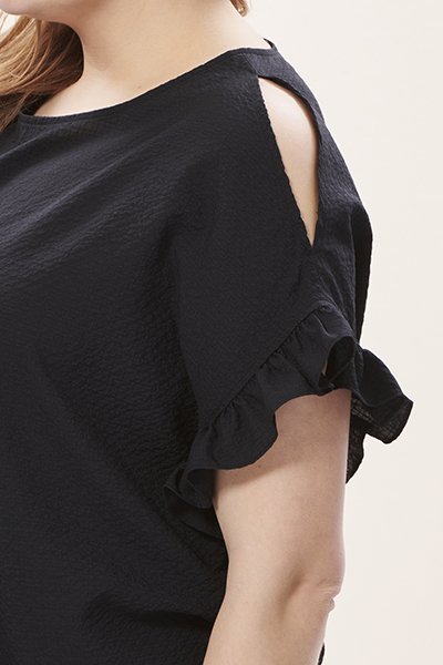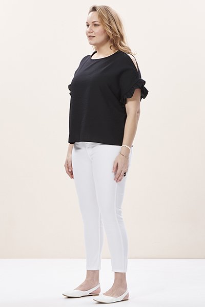 Siyah Kolları Fırfırlı Büyük Beden Kadın Bluz