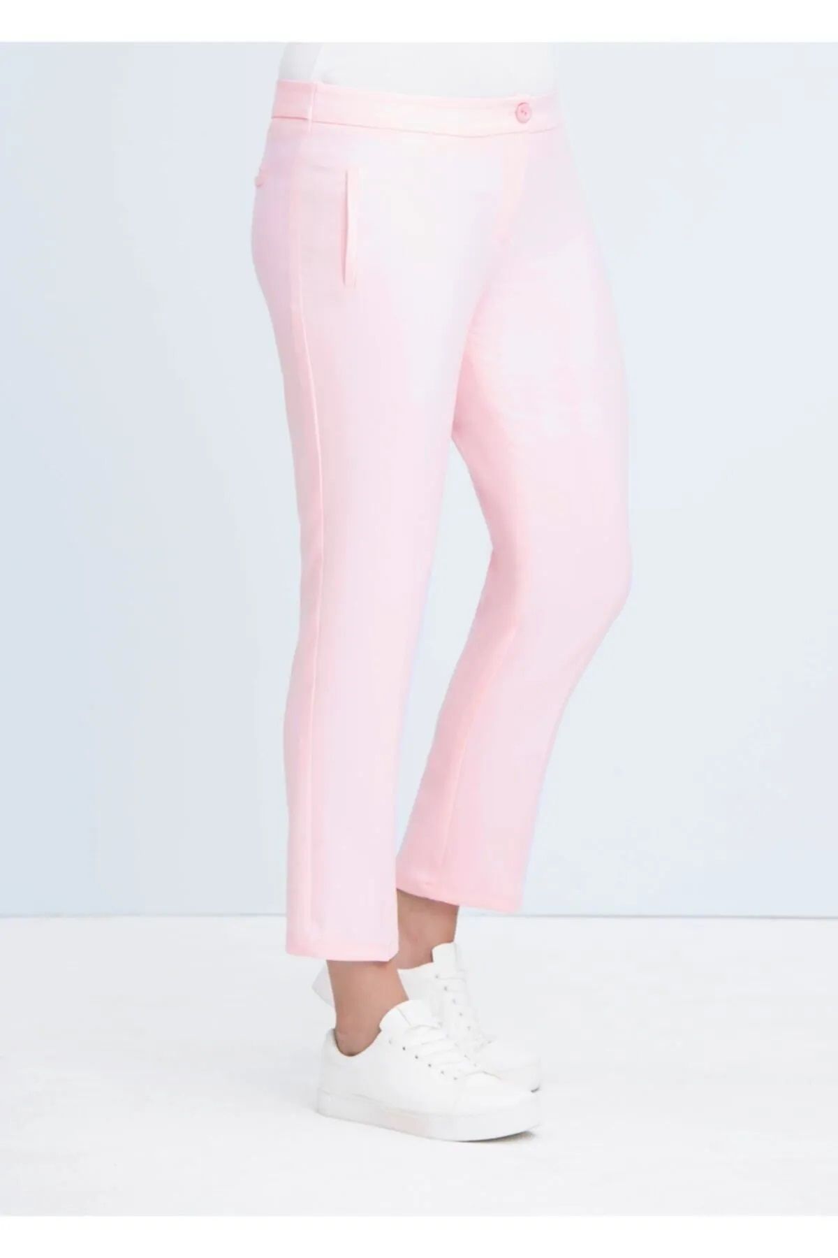 Pembe Düşük Bel Cep Kapaklı Büyük Beden Kadın Pantolon