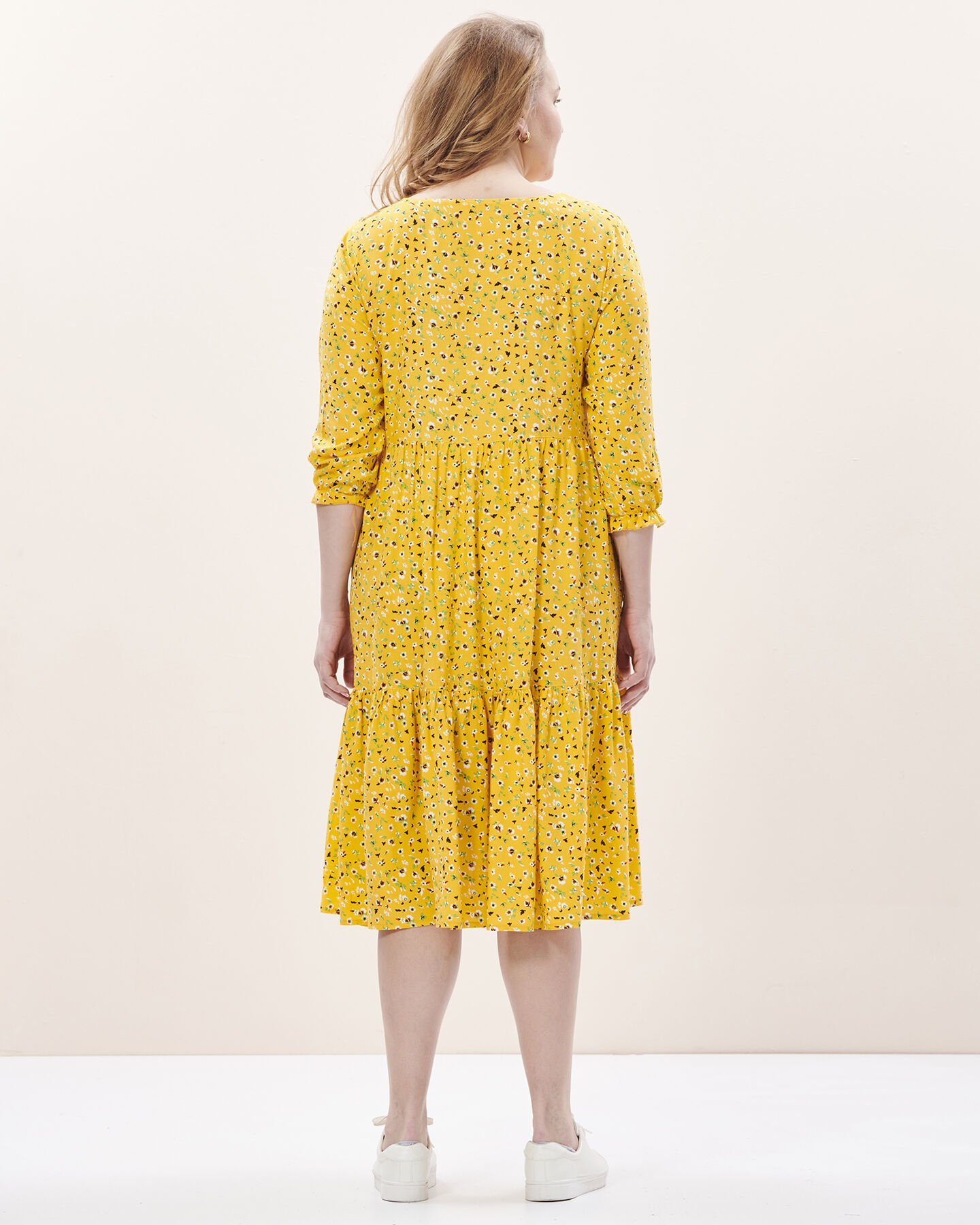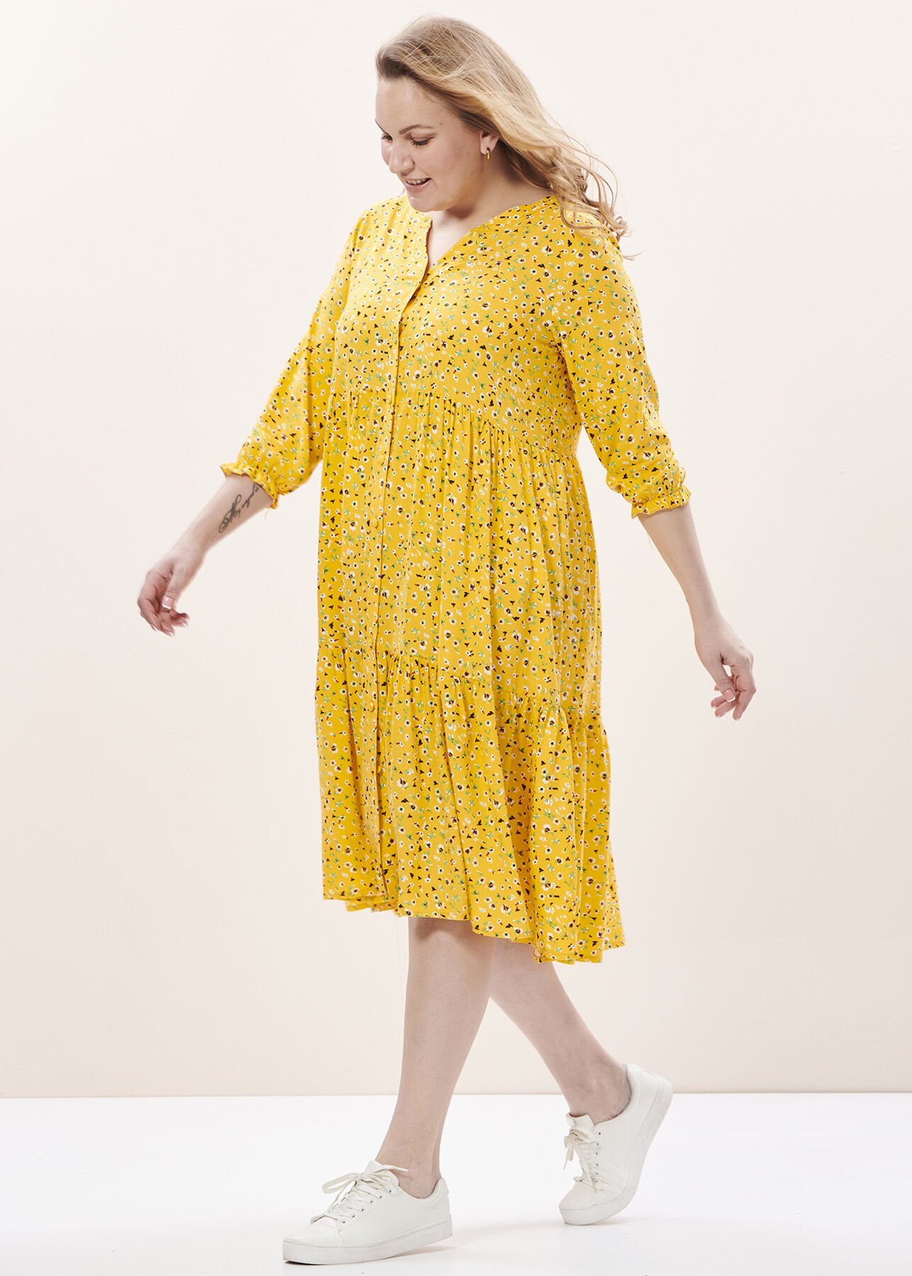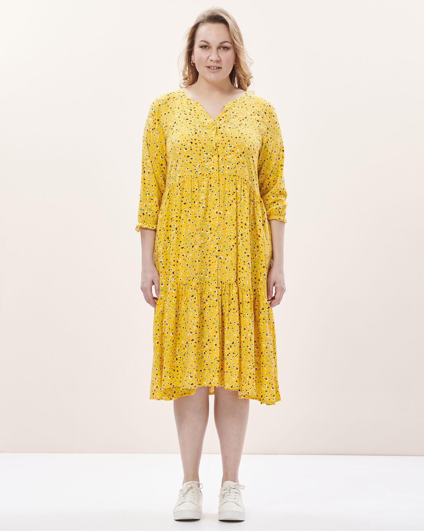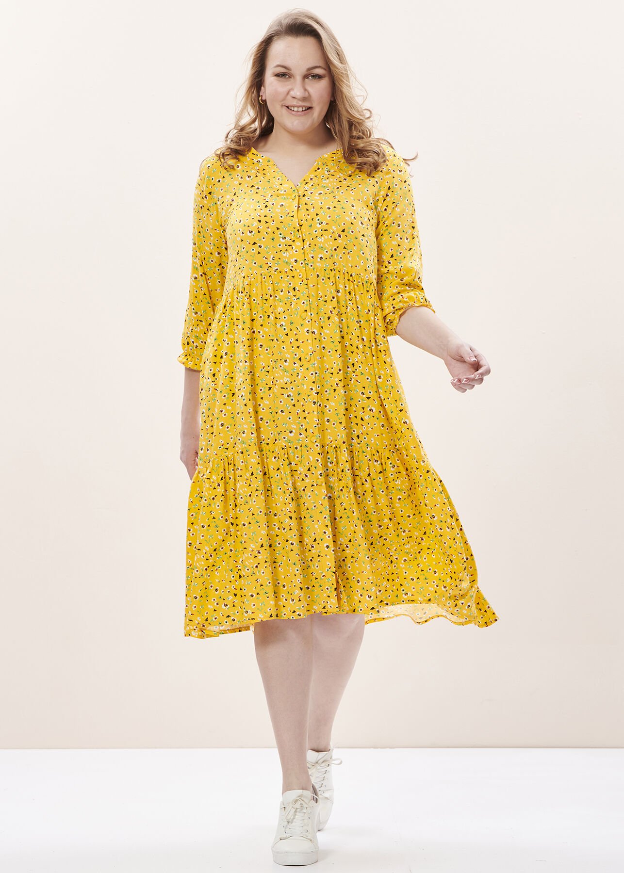 Sarı Çiçekli Viskon Büyük Beden Elbise