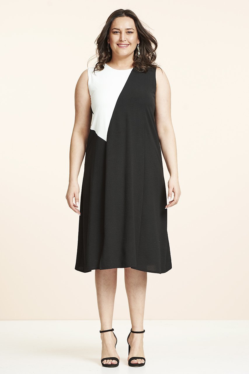Siyah Beyaz Kolsuz Büyük Beden Elbise