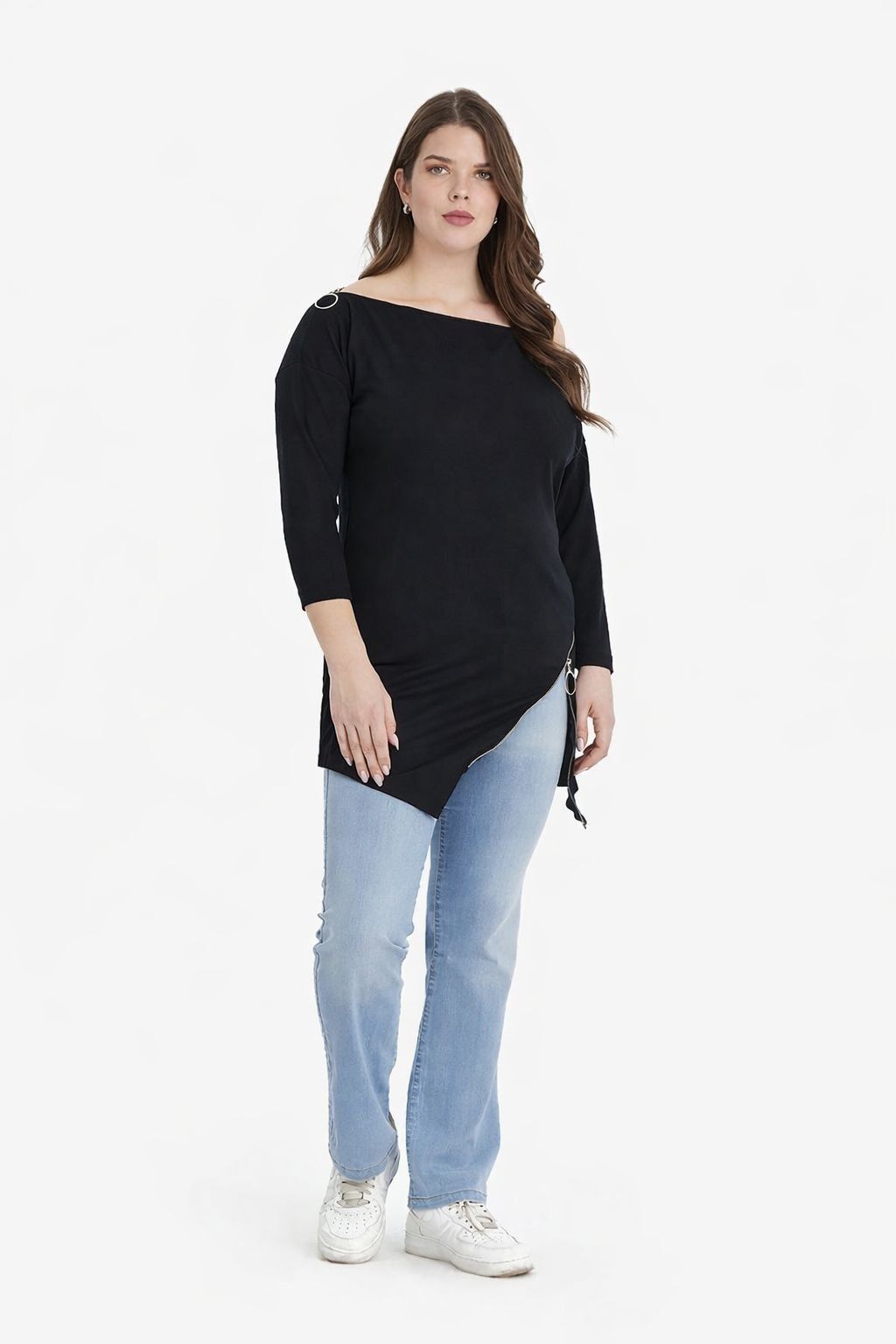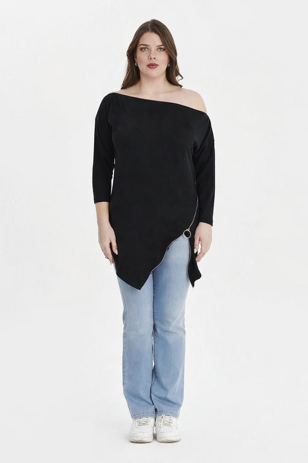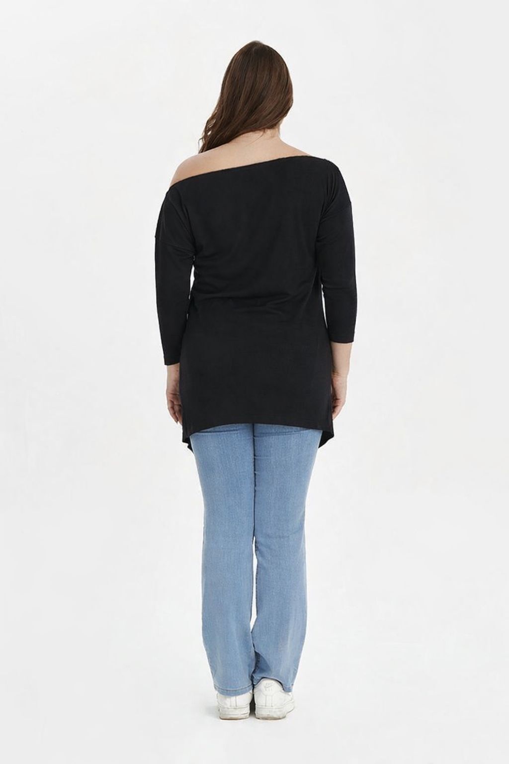 3.Siyah Kayık Yaka İnce Örme Büyük Beden Bluz Boyu: 85cm