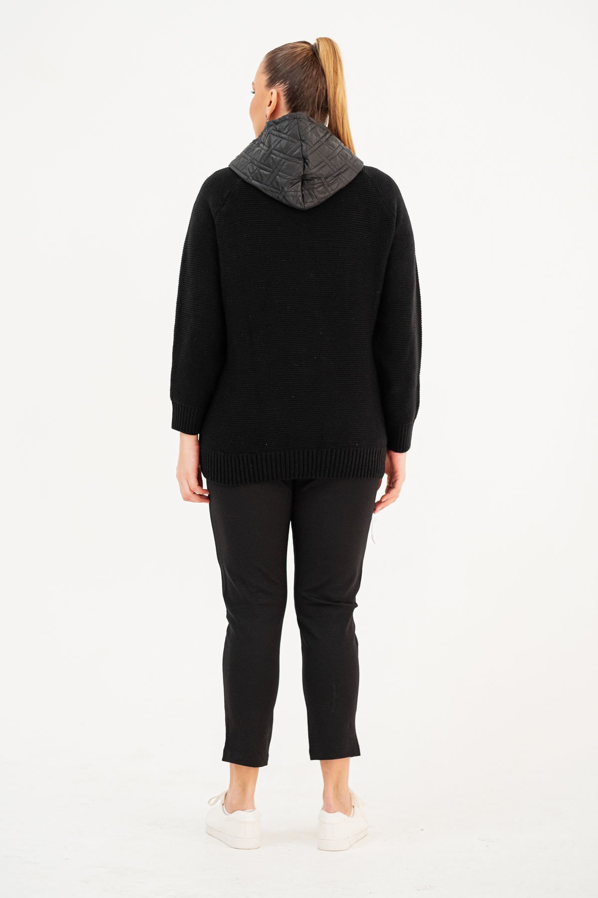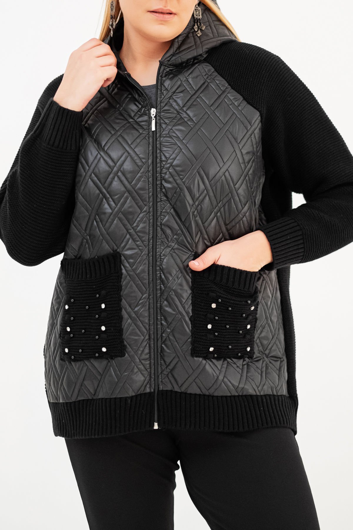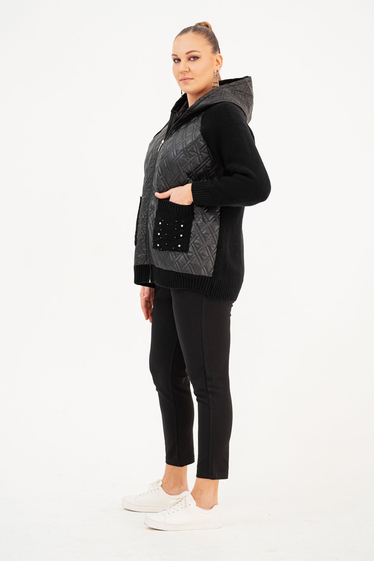 Siyah Kapitoneli Kapşonlu Büyük Beden Ceket