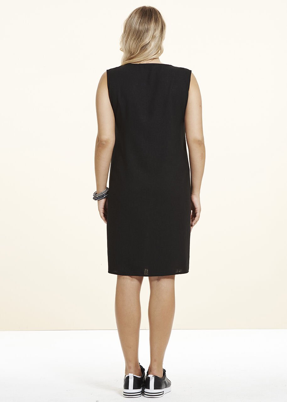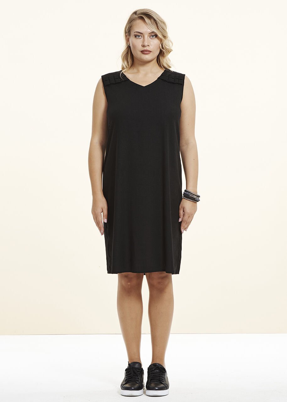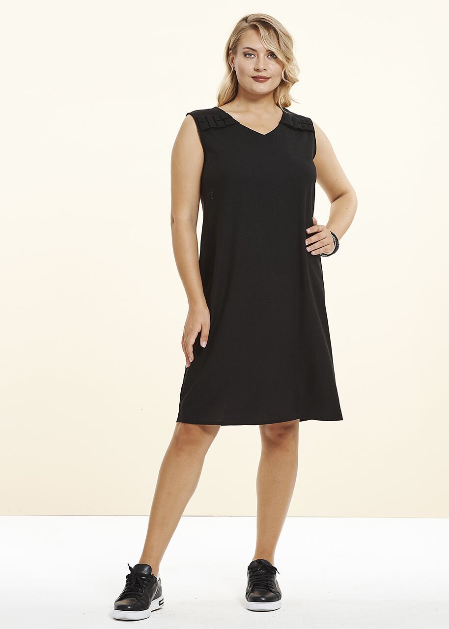 Siyah Keten Kumaş Büyük Beden Elbise