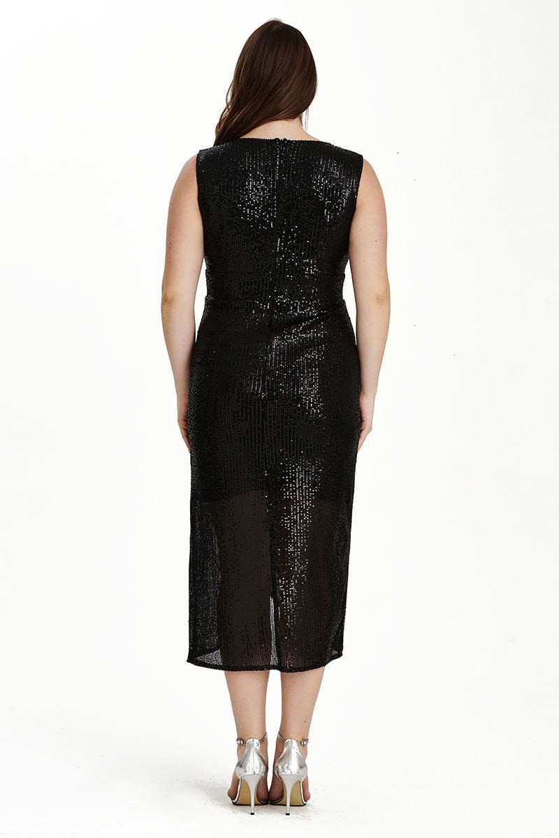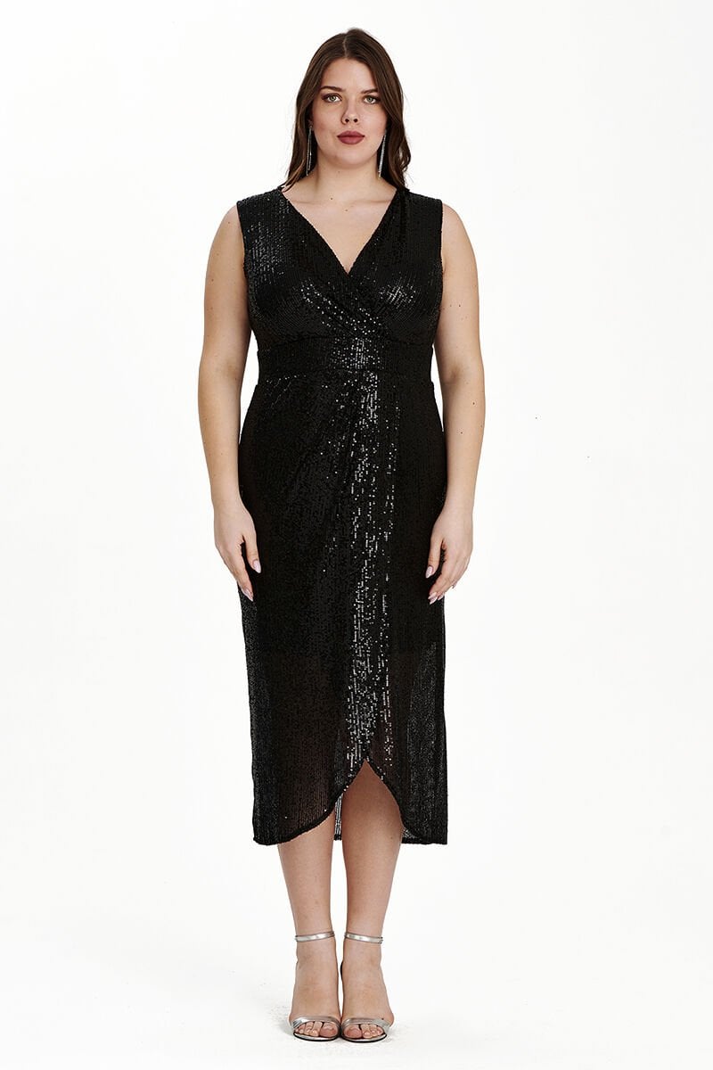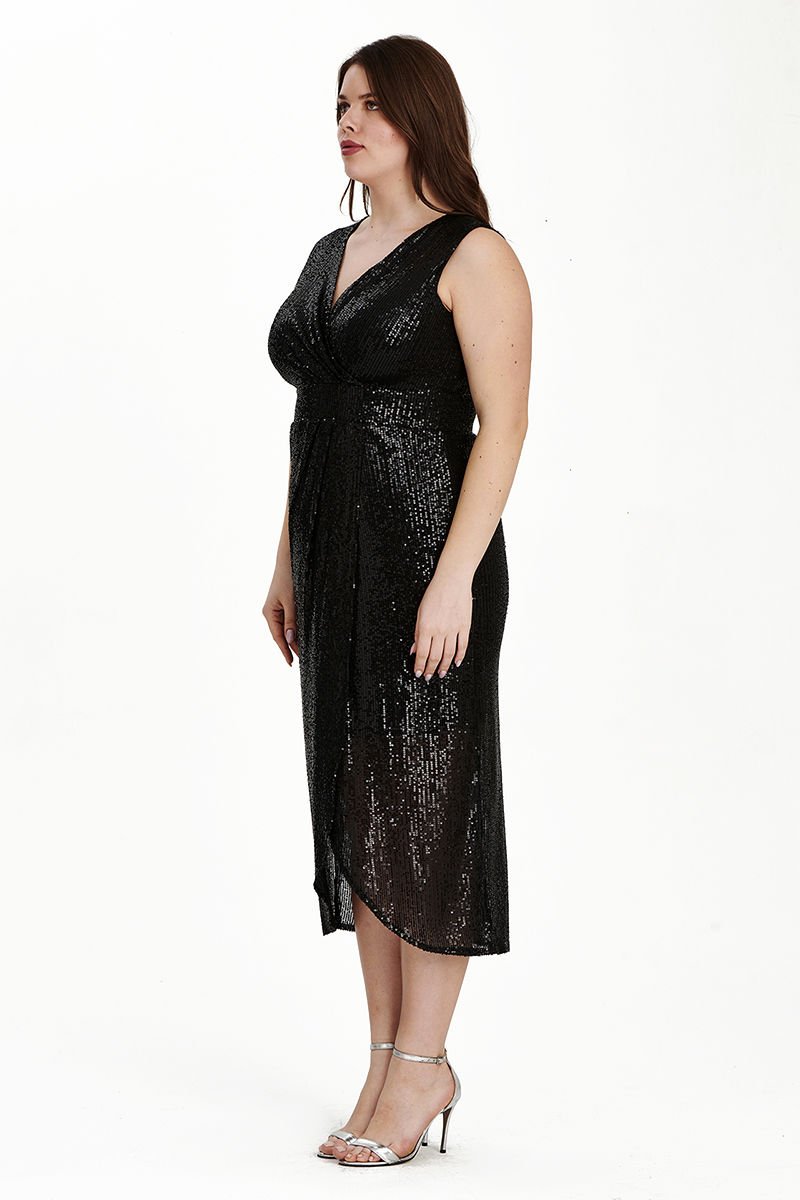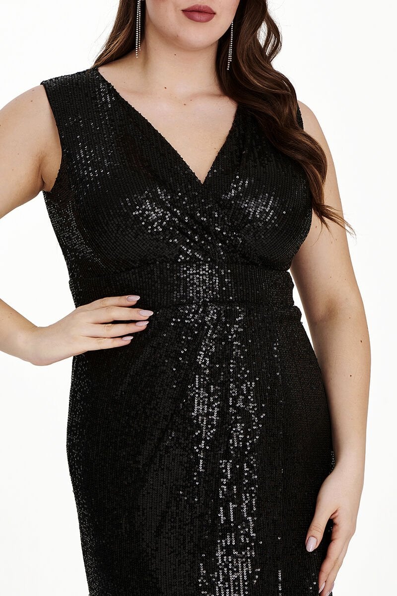 Siyah Kolsuz Önü Kruvaze Zara Payet Büyük Beden Abiye Elbise