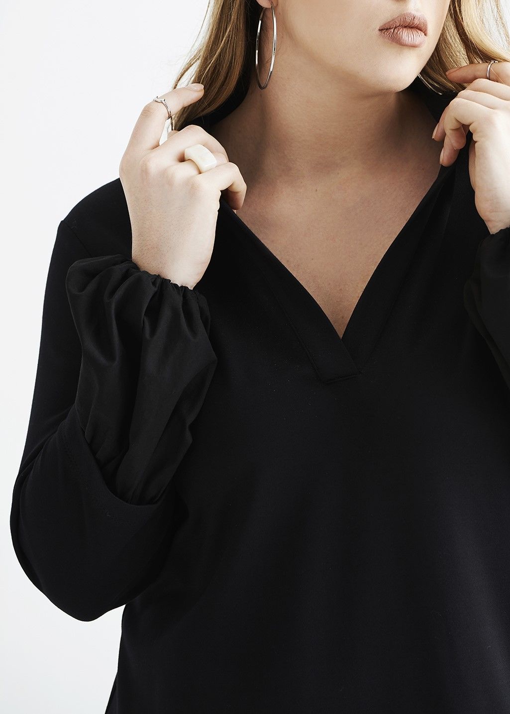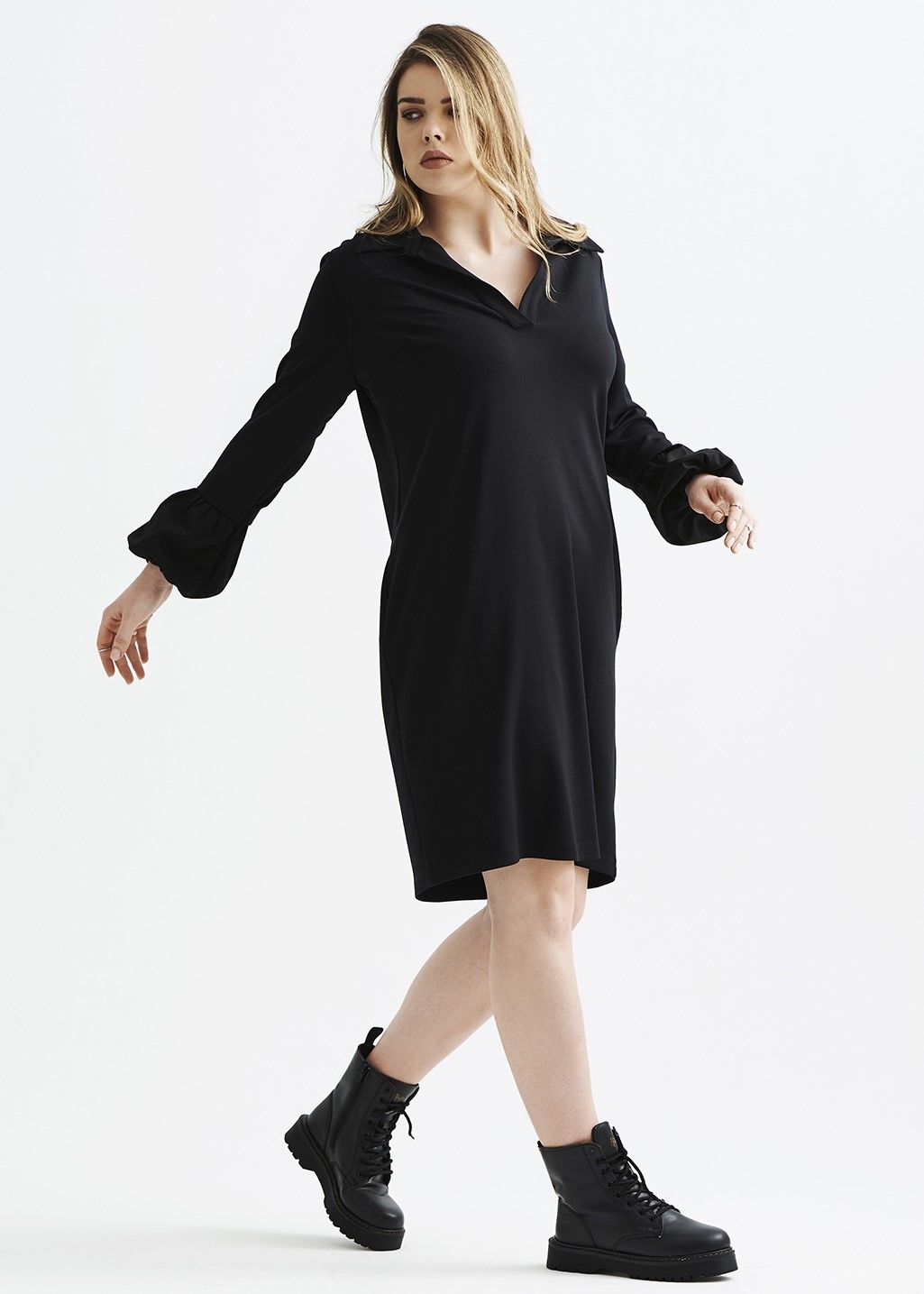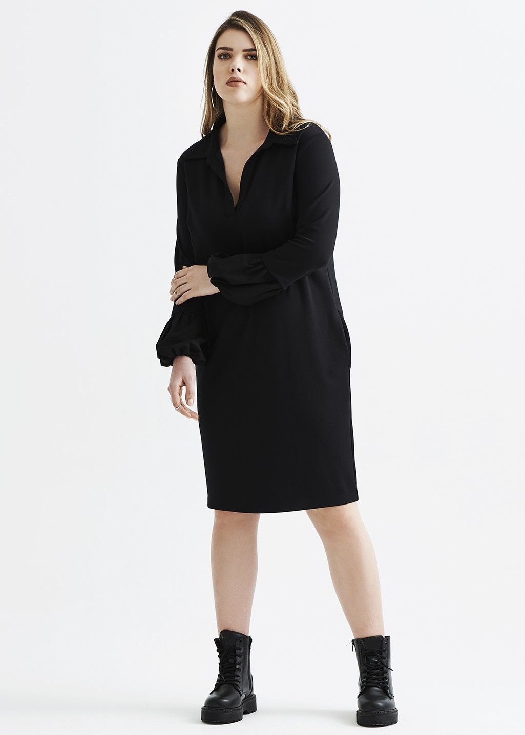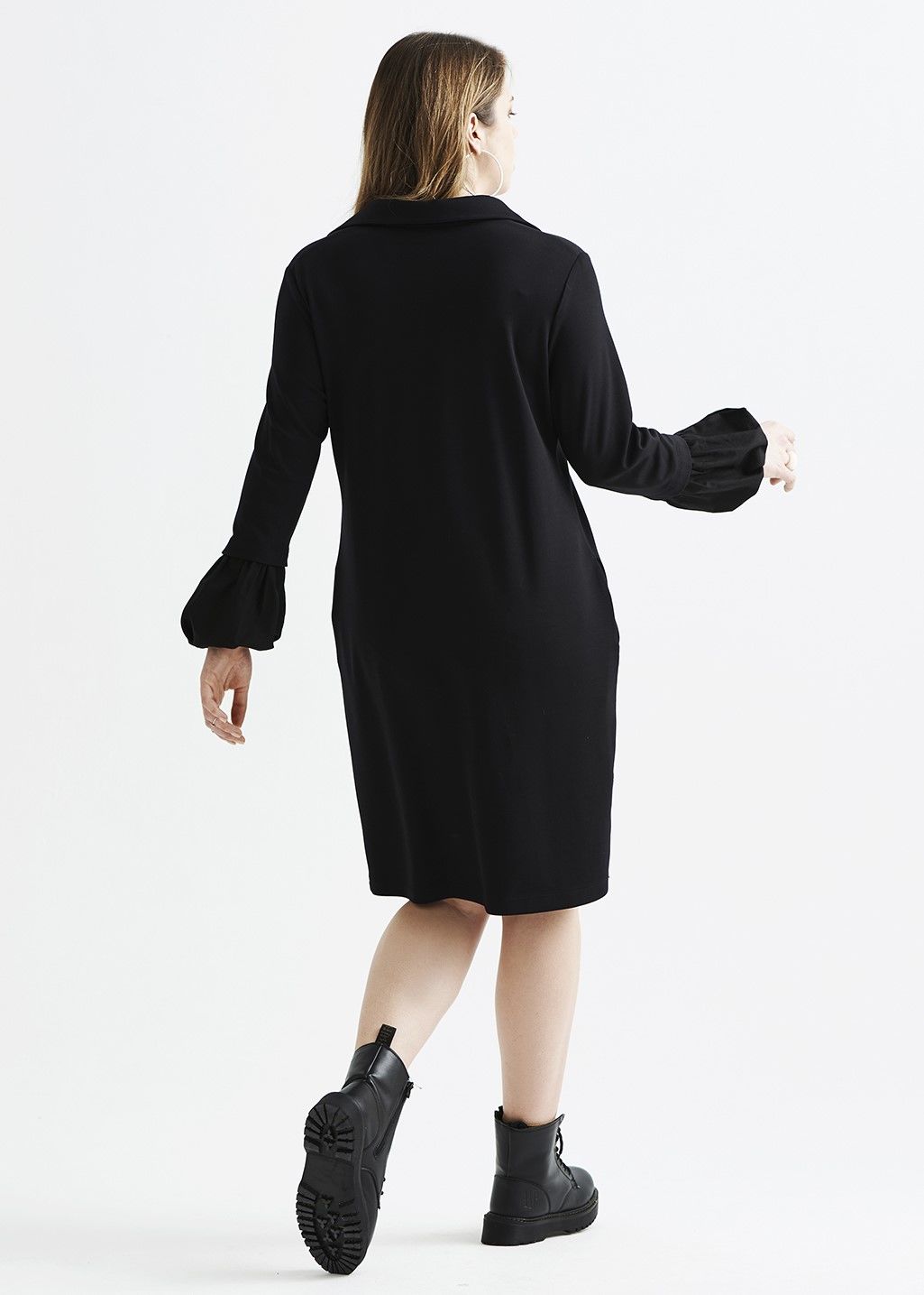 Siyah Kolu Balon Detaylı Büyük Beden Elbise