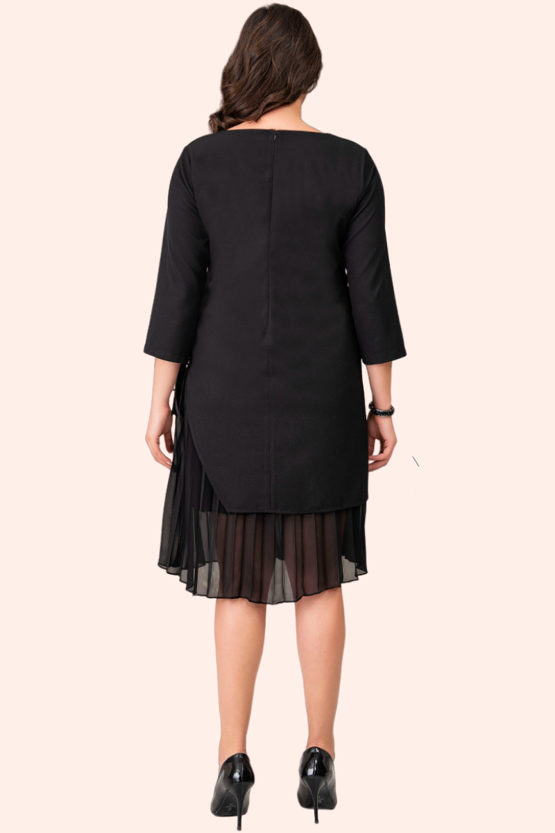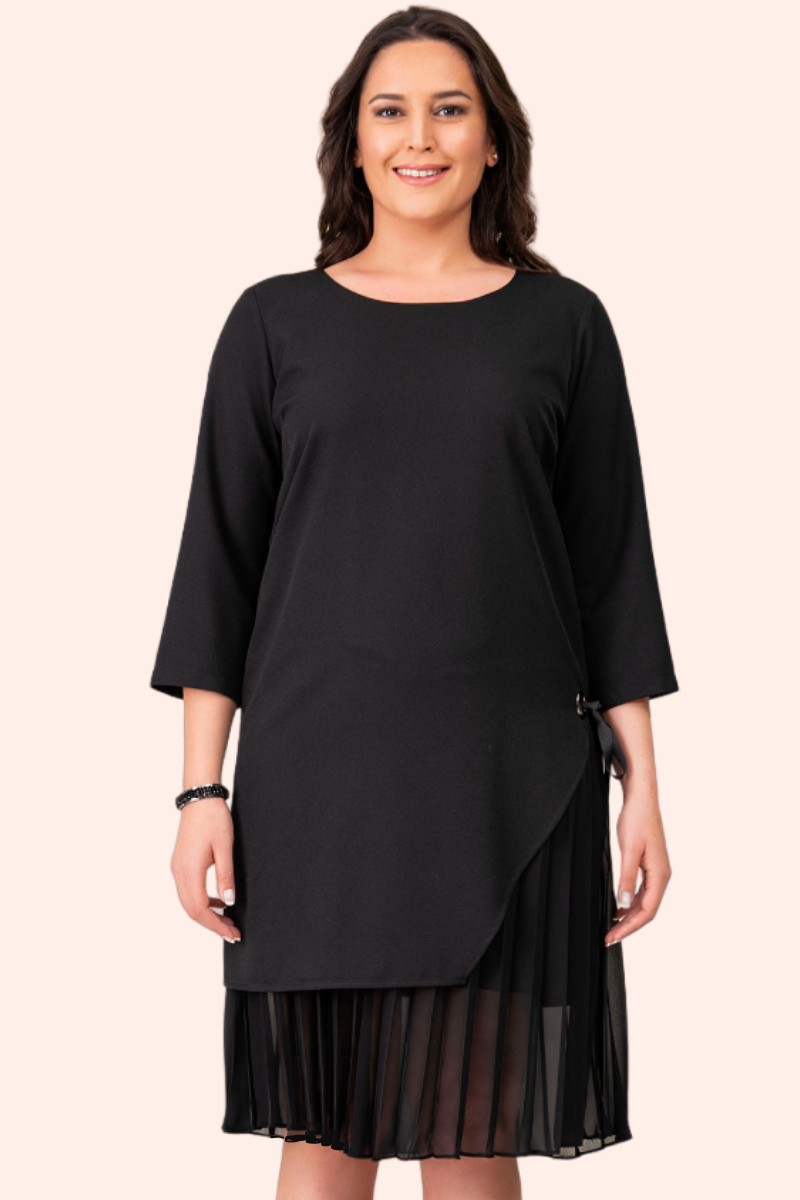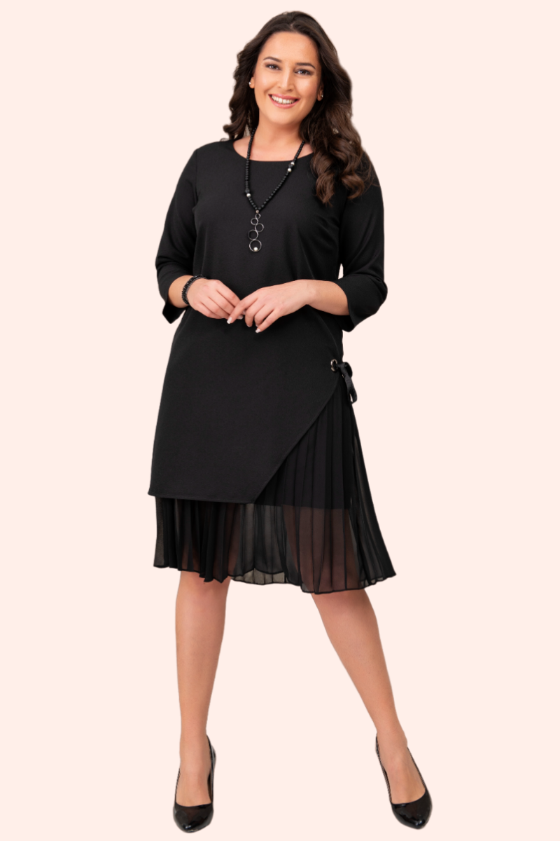Siyah Yanı Kurdele Detaylı Büyük Beden Elbise