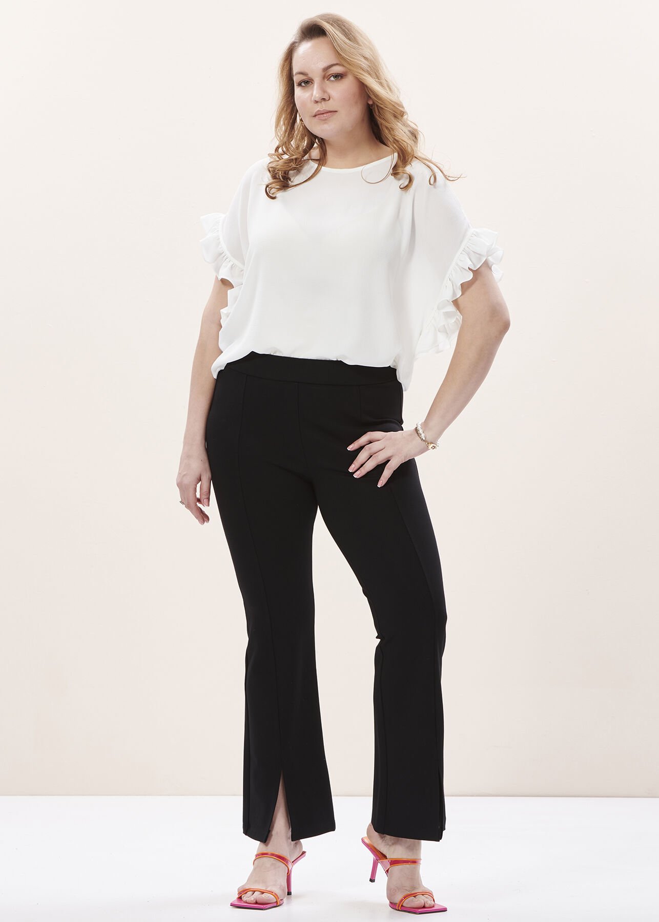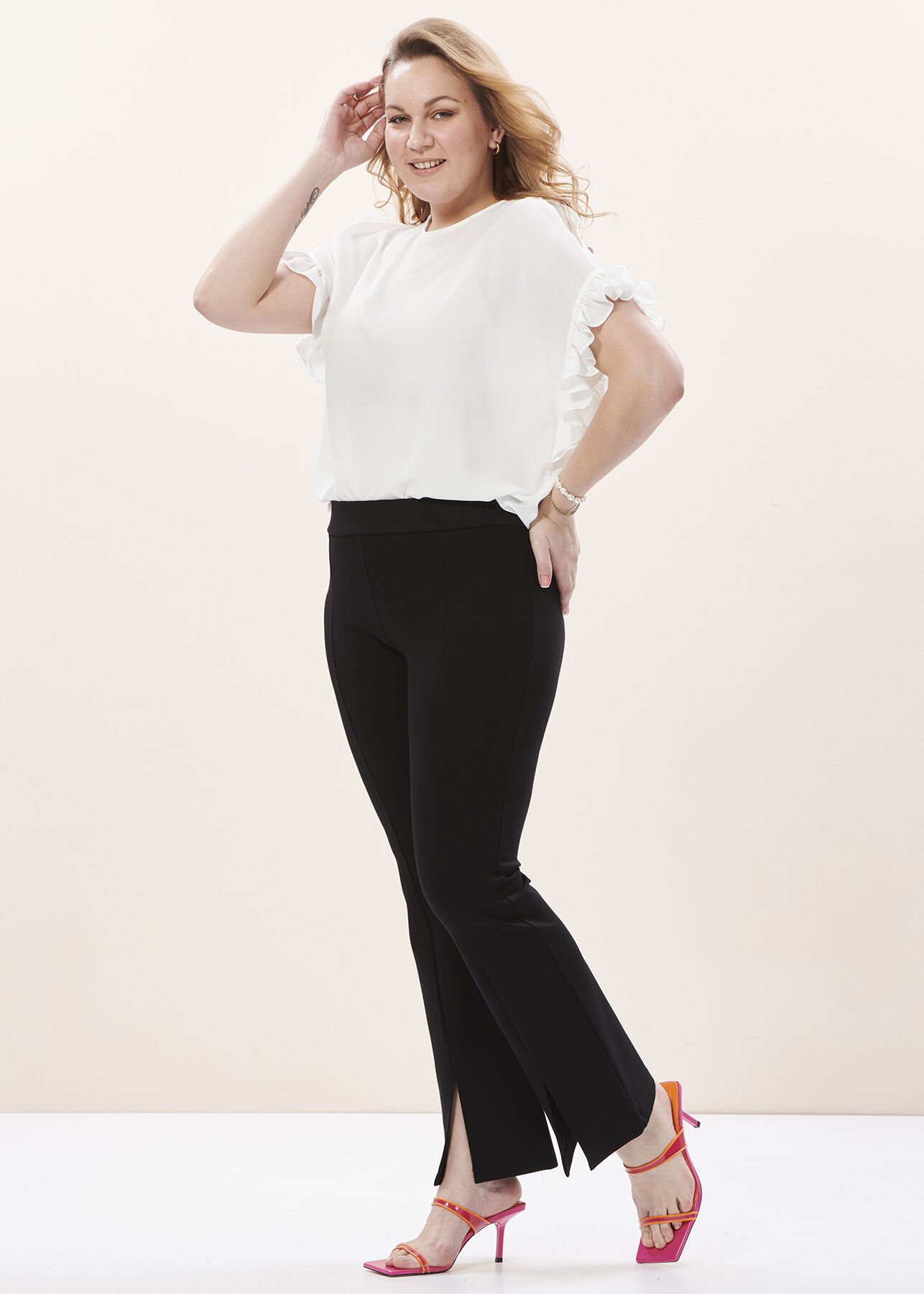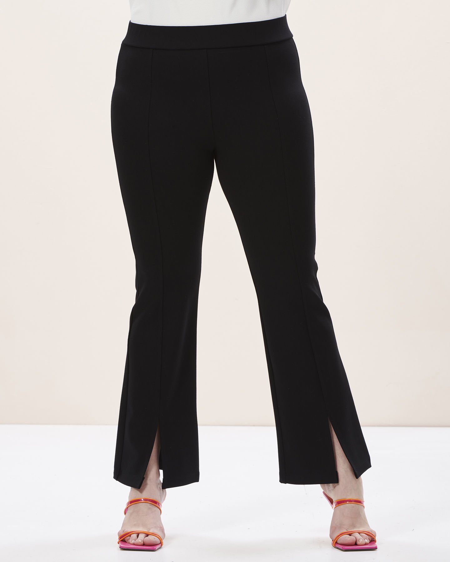 Siyah Yüksek Bel İspanyol Paça Yırtmaçlı Örme Pantolon