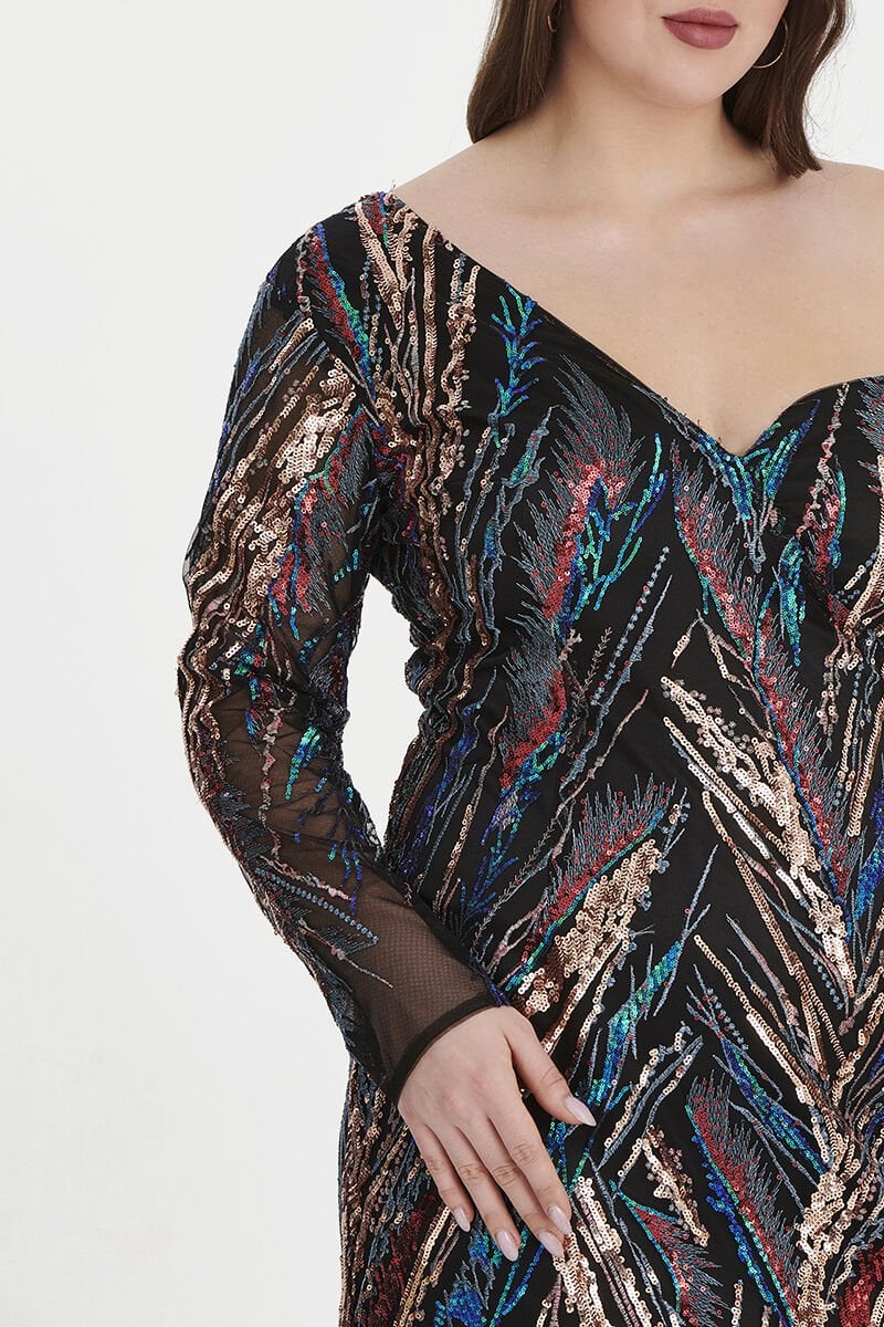 5.Tek Omuz Tül Renkli Payet İşlemeli Büyük Beden Abiye Elbise Mankenin Boyu 182cm Üzerindeki 44 Beden