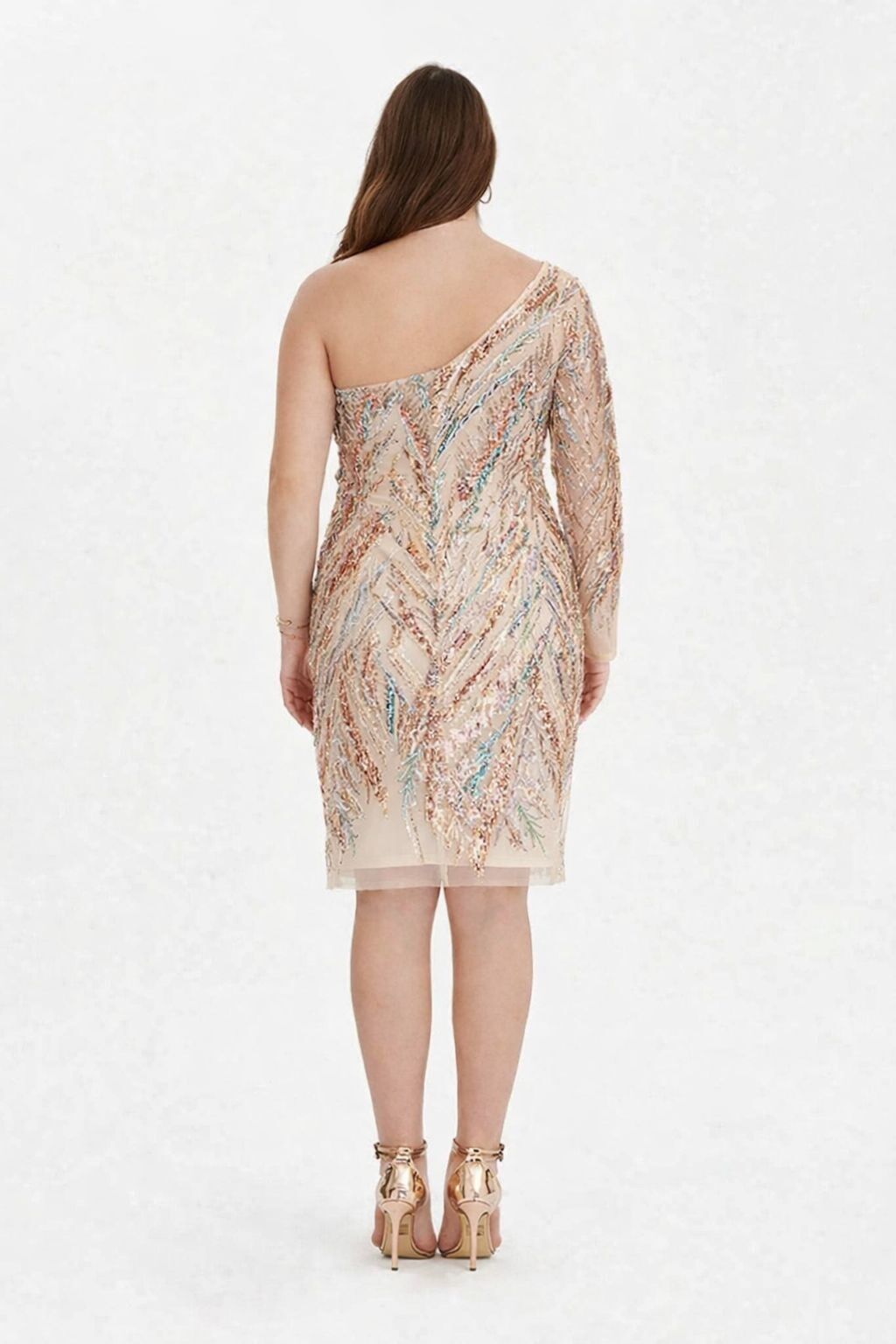 5.Tek Omuz Tül Renkli Payet İşlemeli Büyük Beden Abiye Elbise Mankenin Boyu 182cm Üzerindeki 44 Beden