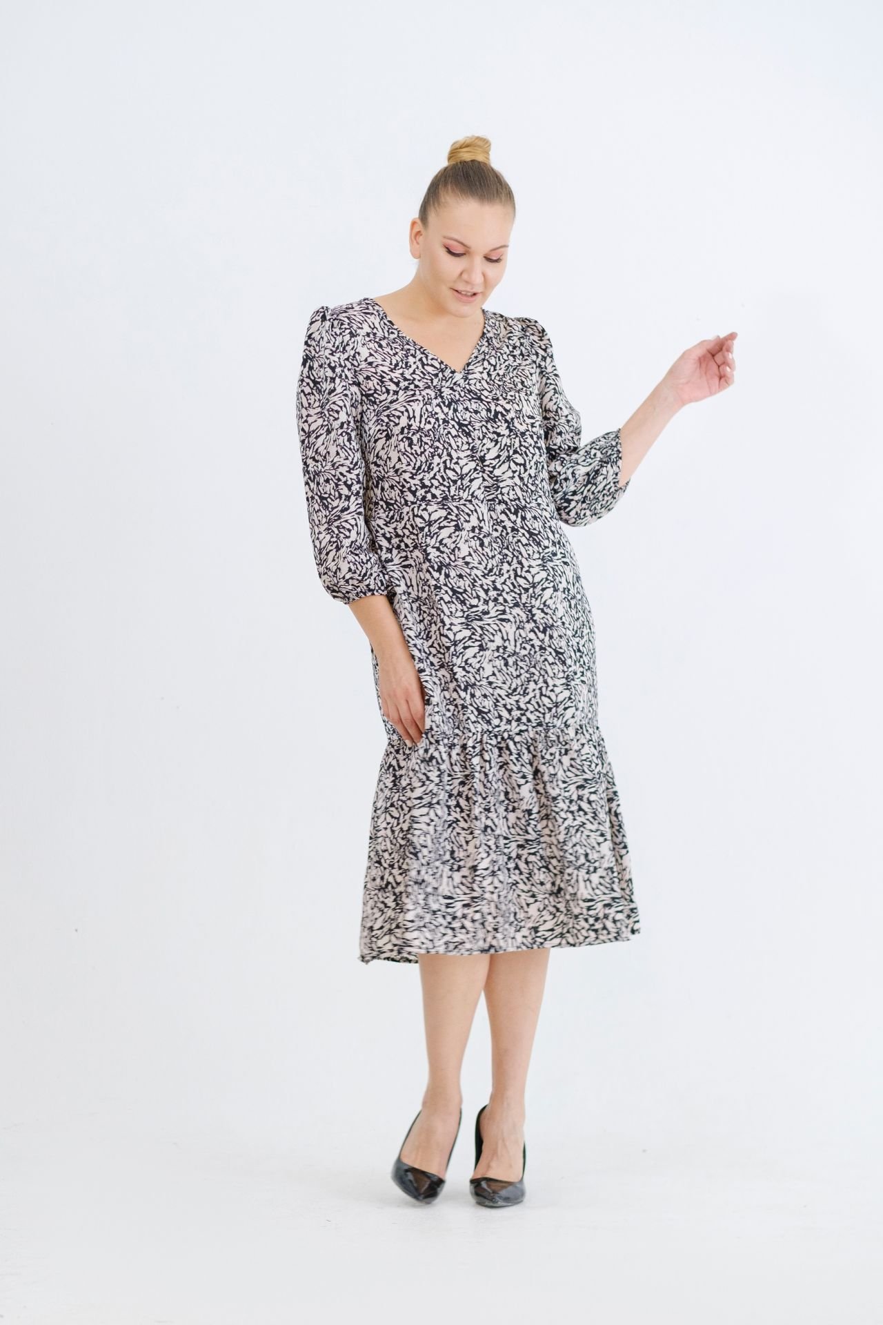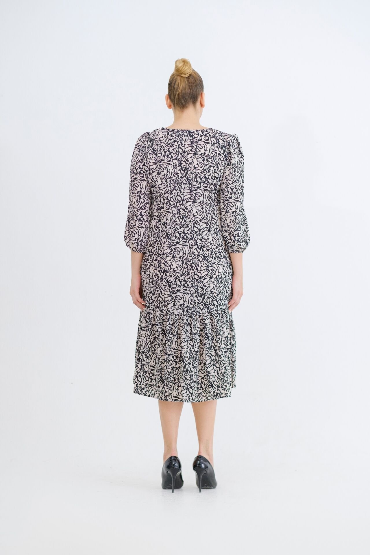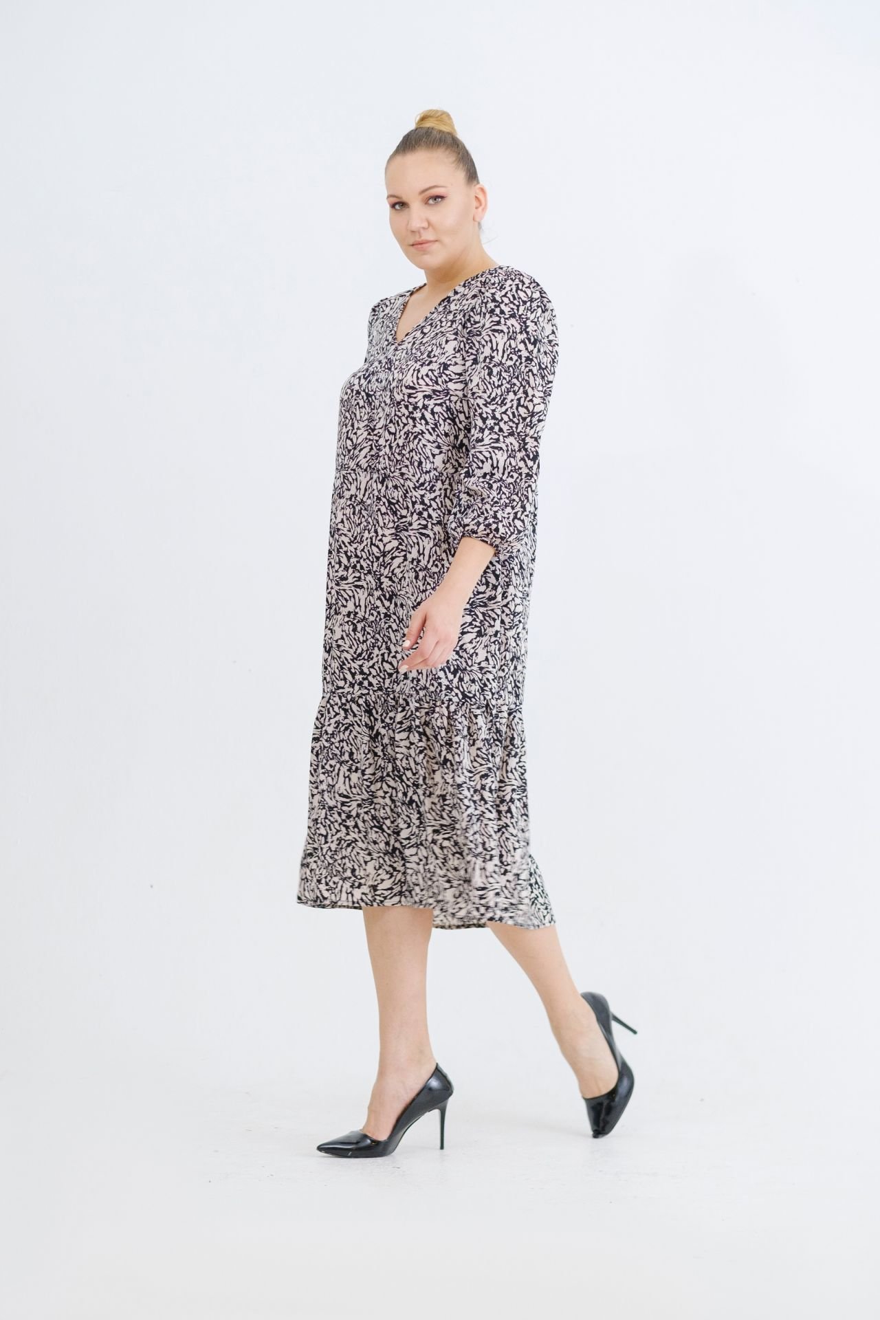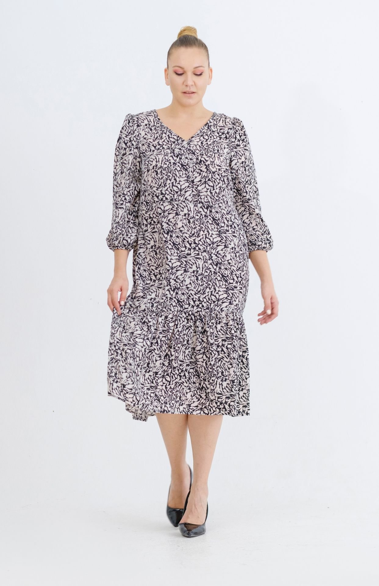 4.Ve Yaka Zebra Desen Büyük Beden Elbise Boyu 114cm