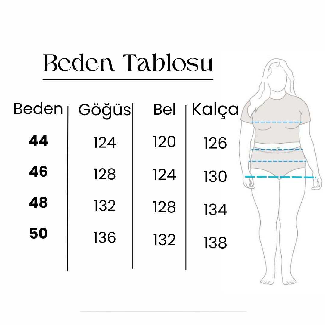 Büyük beden bluz boyunun 88 cm. olması nedeni ile taytlar ve dar jeanler ile kullanımı oldukça rahattır. 44 , 46 , 48 ve 50 Beden olarak üretilmiştir. Yakası Çıtçıtlı Büyük Beden Bluzun kumaşında hafif bir likrası vardır. Beden seçiminde ölçü tablosundan yararlanabilirsiniz.