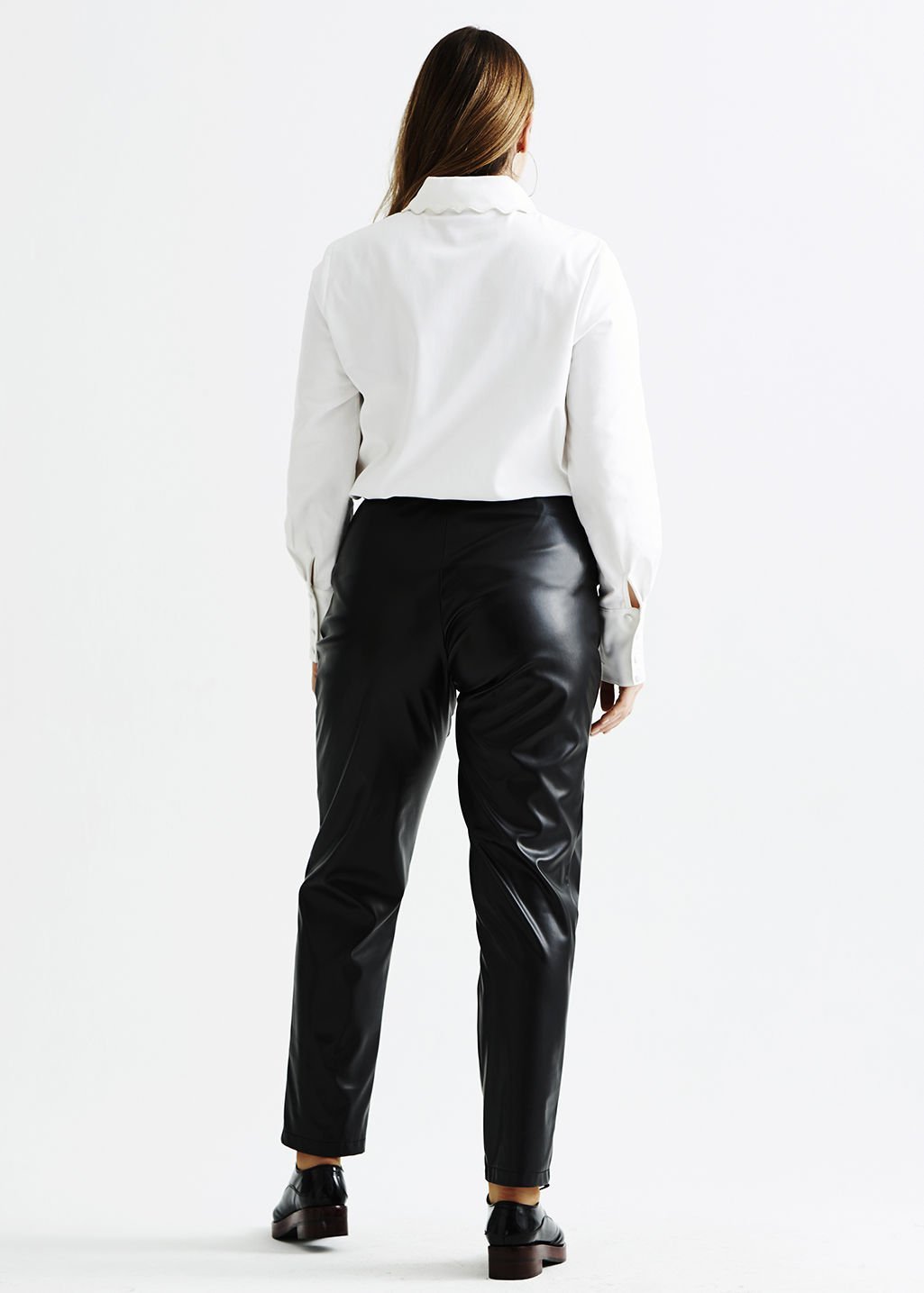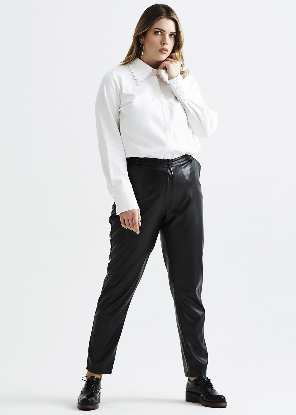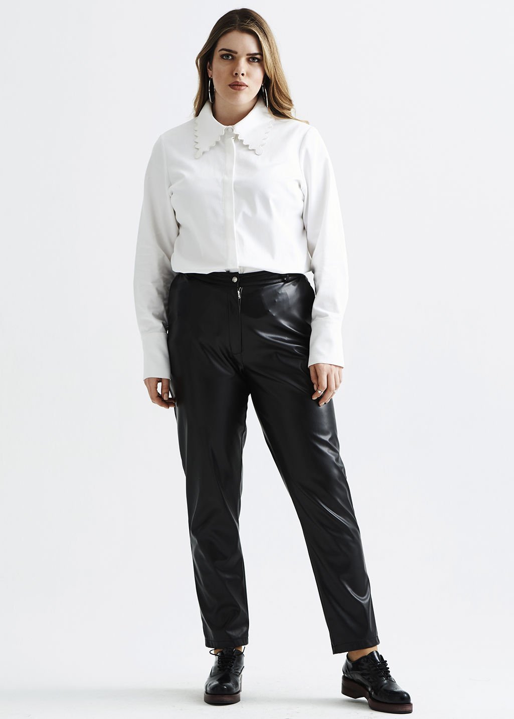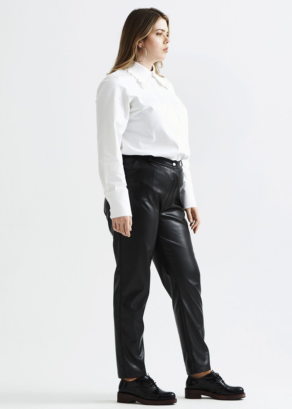 Yandan Cepli Siyah Suni Deri Büyük Beden Pantolon