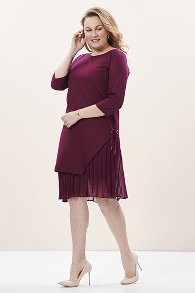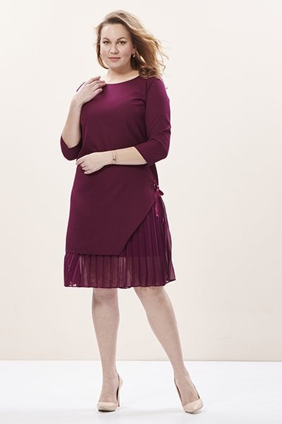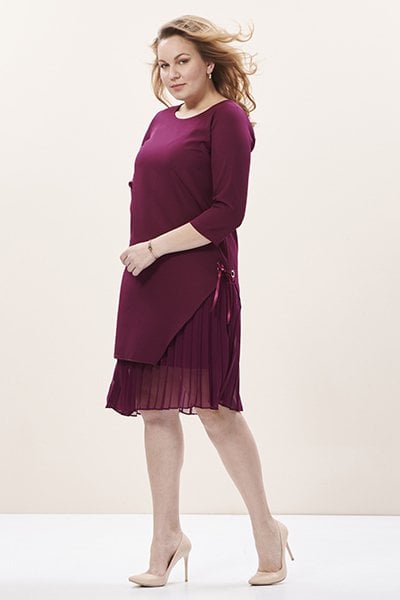 Yanı Kurdele Detaylı Mürdün Büyük Beden Elbise