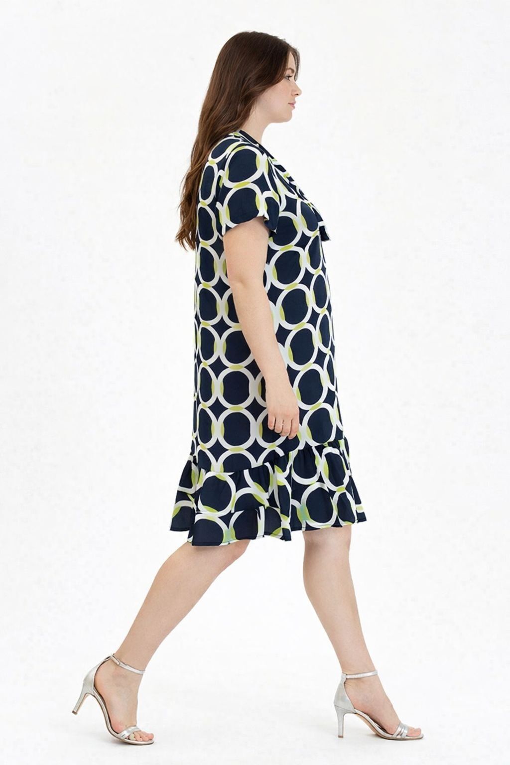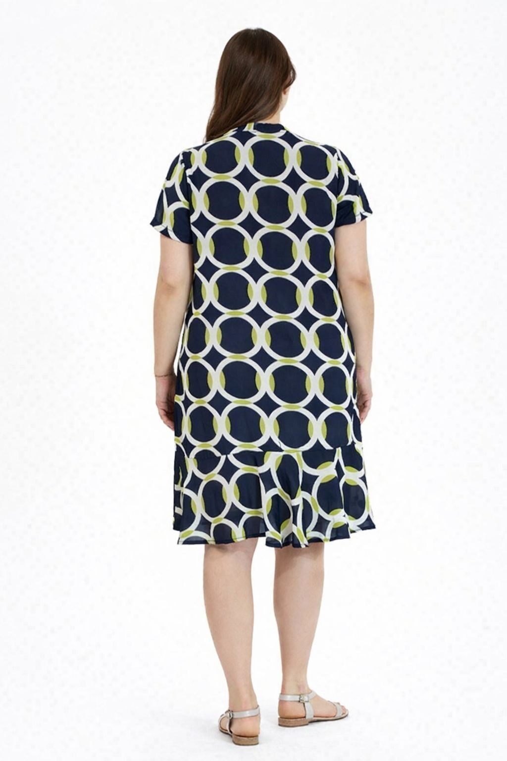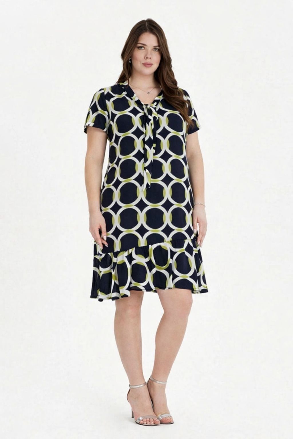 Yeşil Geometrik Desenli Büyük Beden Elbise